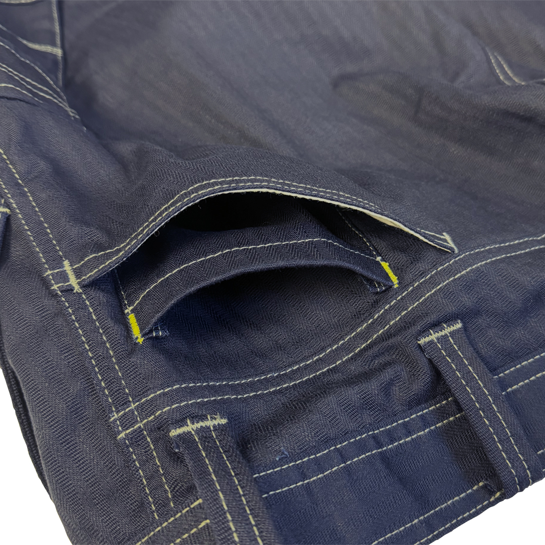 ●前開きベルト部分・前身頃の両脇ポケット口部分に補強布