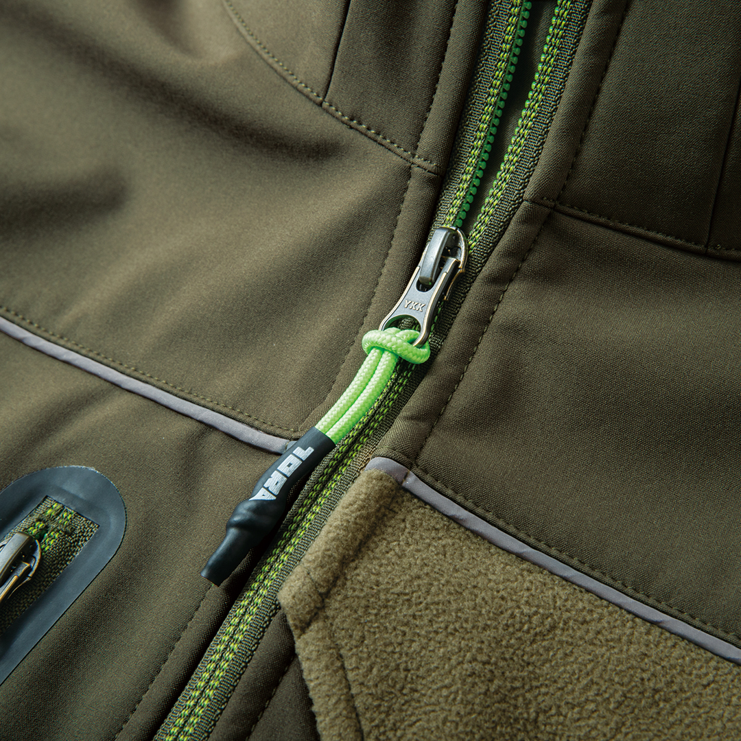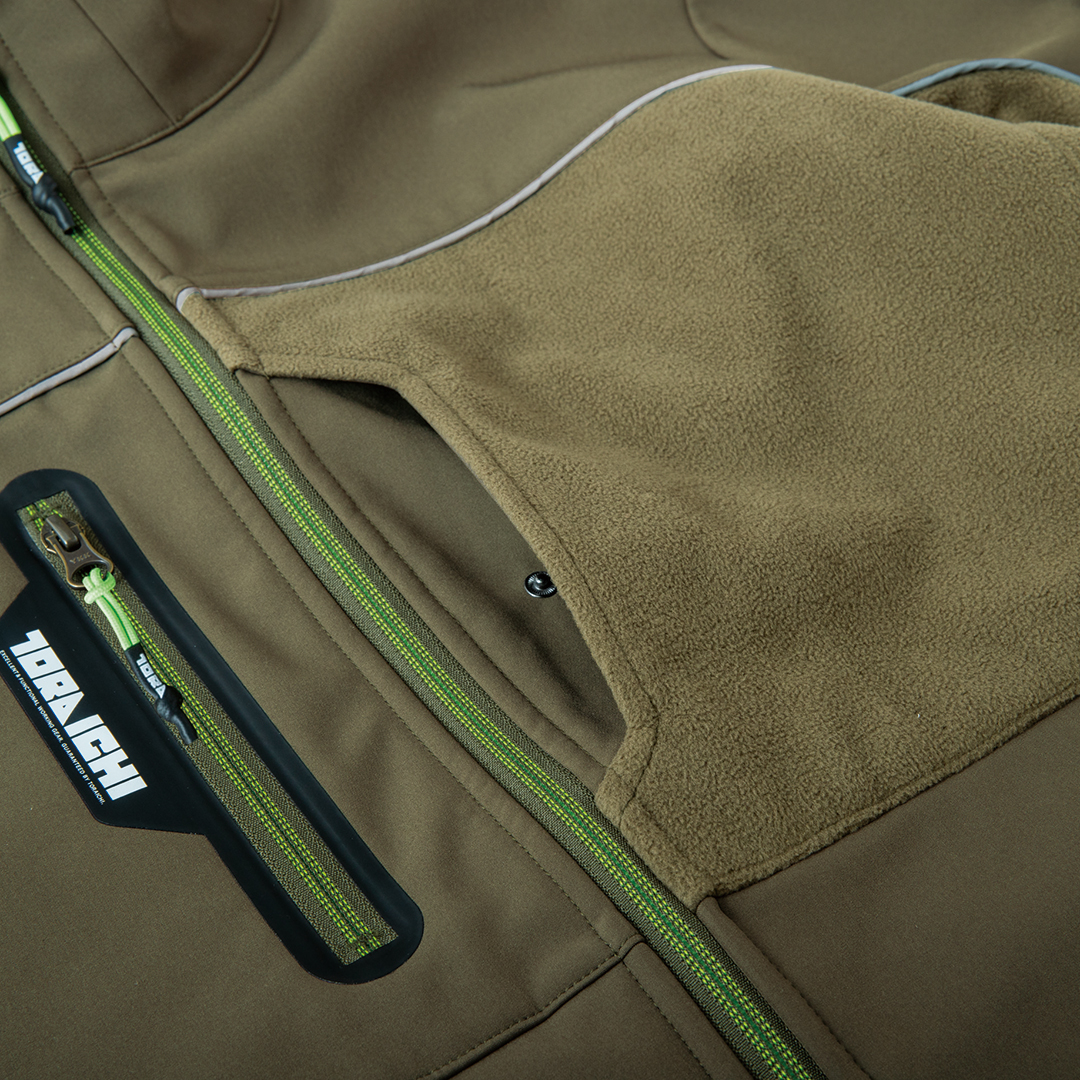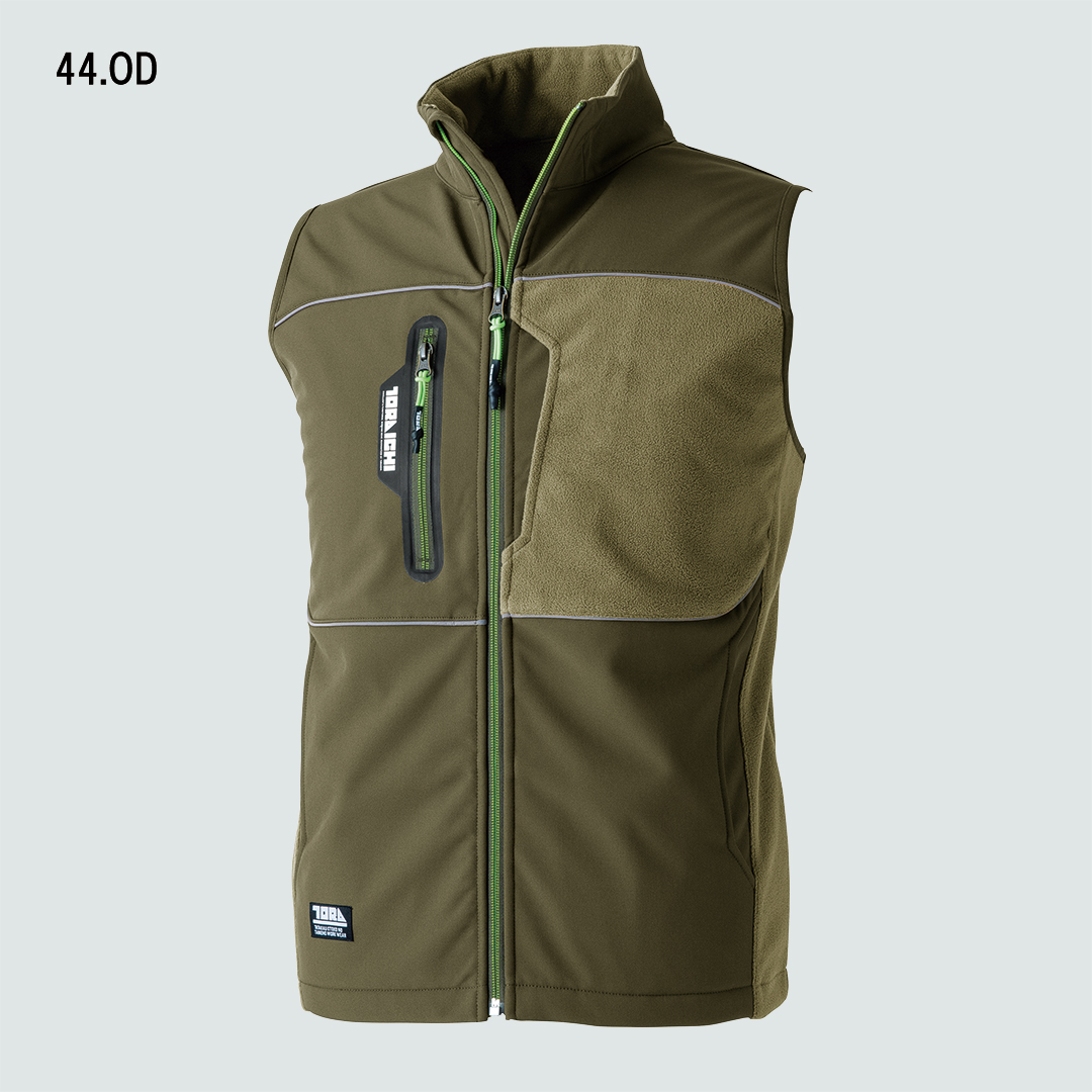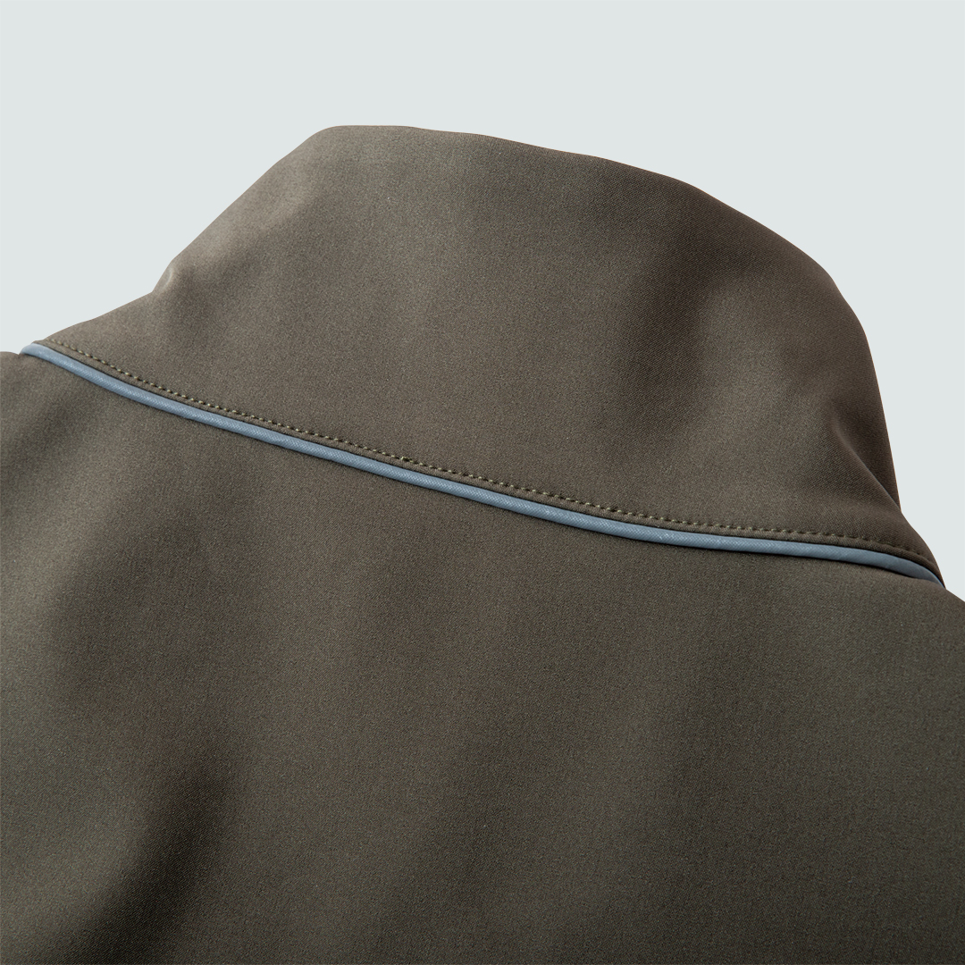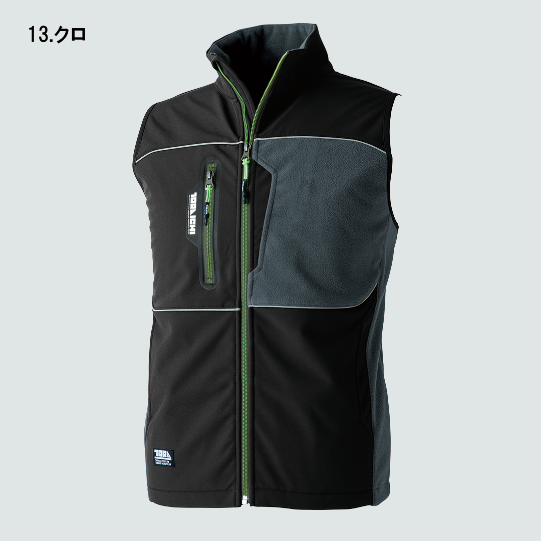 反射材のパイピングにより暗所での視認性も考慮したデザインの防寒べスト