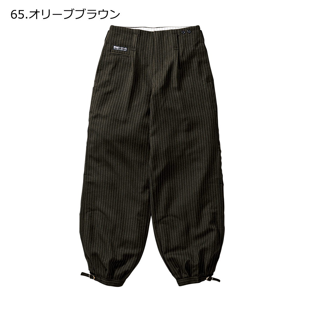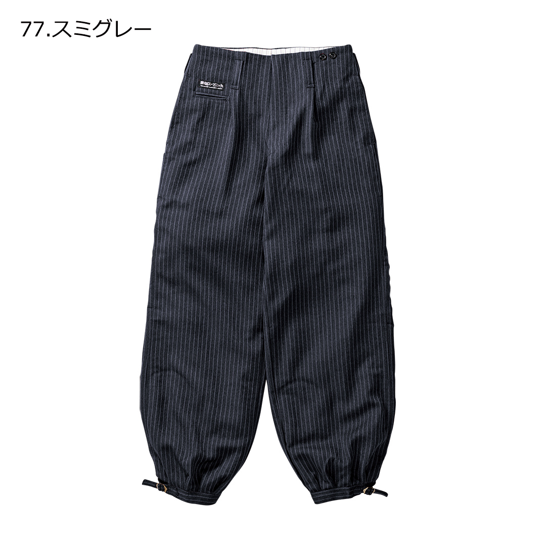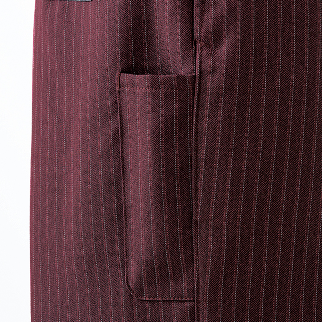 ズボン感覚ではける手軽さが魅力です。変わり織り独自の風合い、ピンストライプが加わって、いっそうオリジナリティのある雰囲気です。