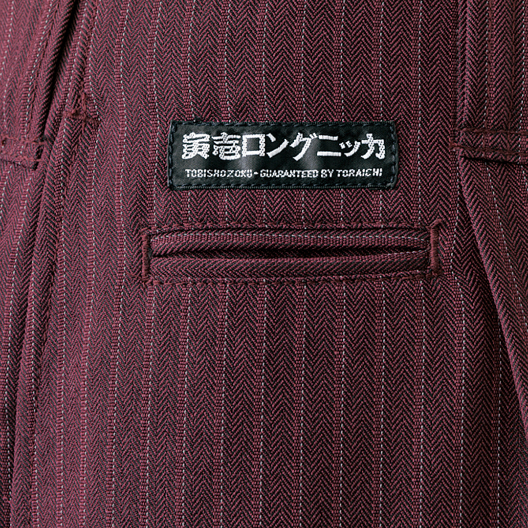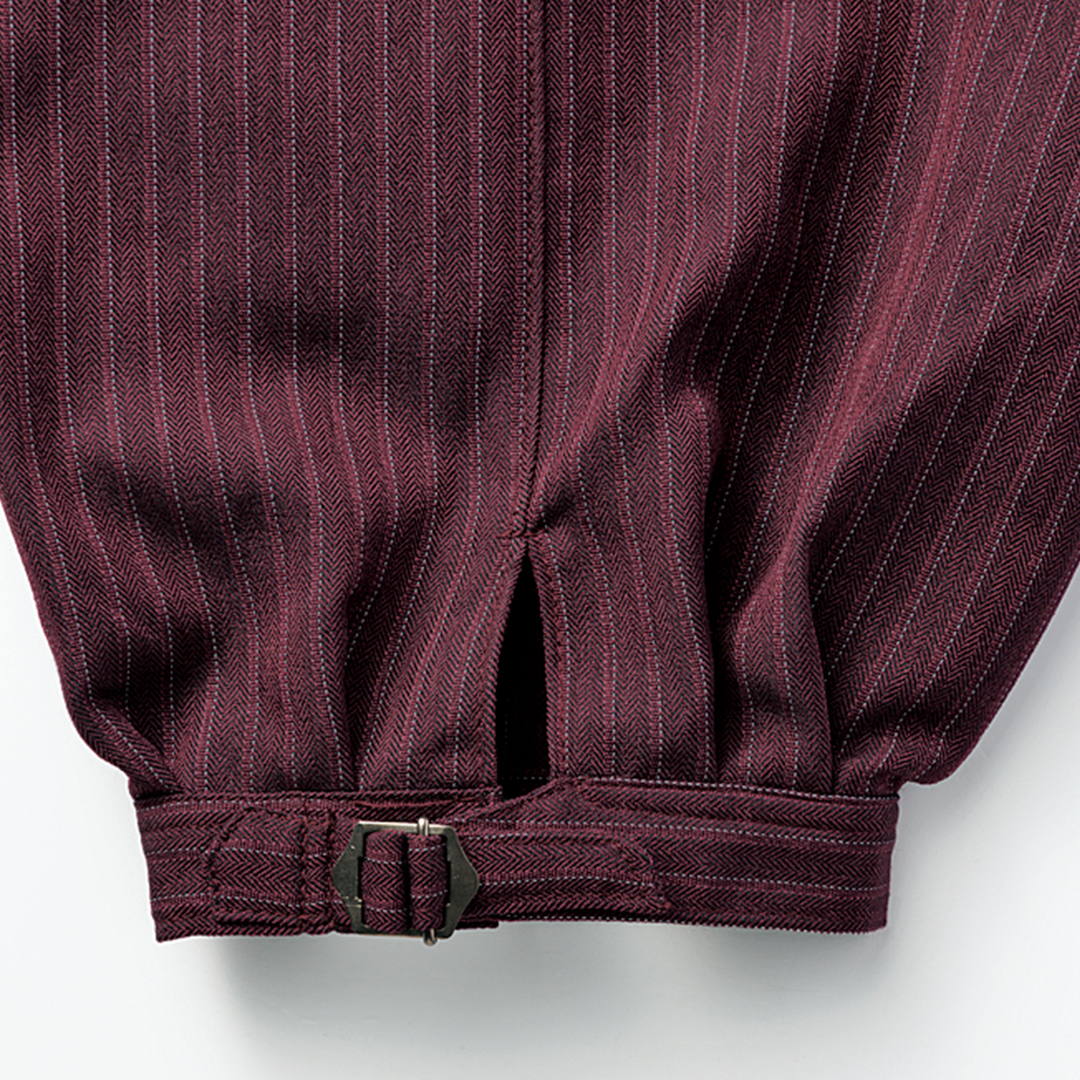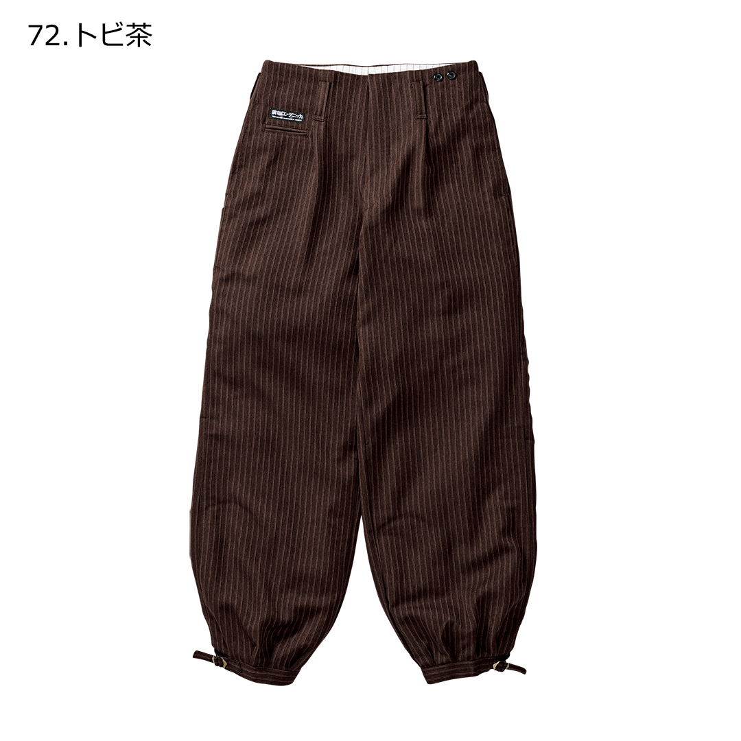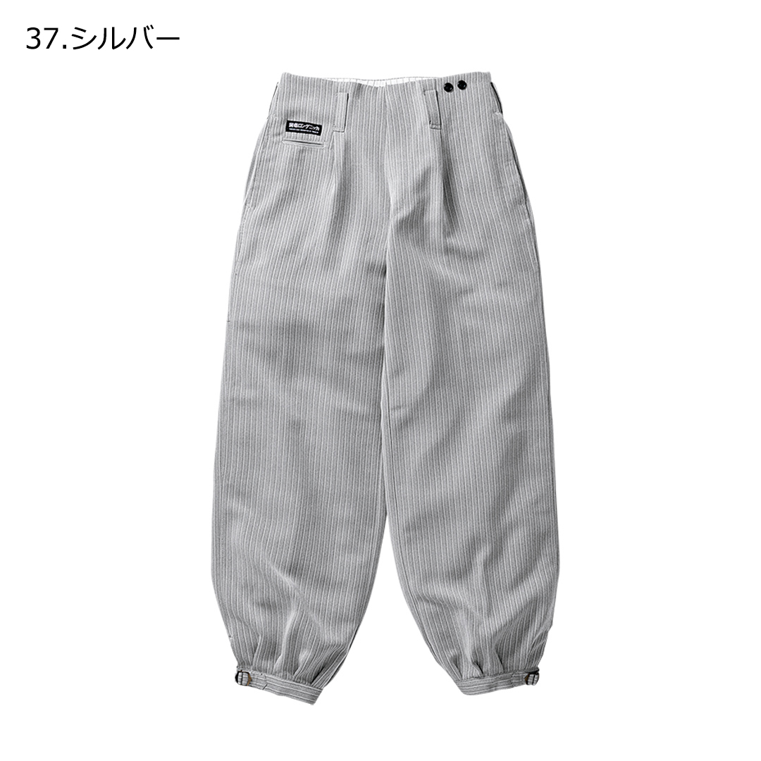 ズボン感覚ではける手軽さが魅力です。変わり織り独自の風合い、ピンストライプが加わって、いっそうオリジナリティのある雰囲気です。