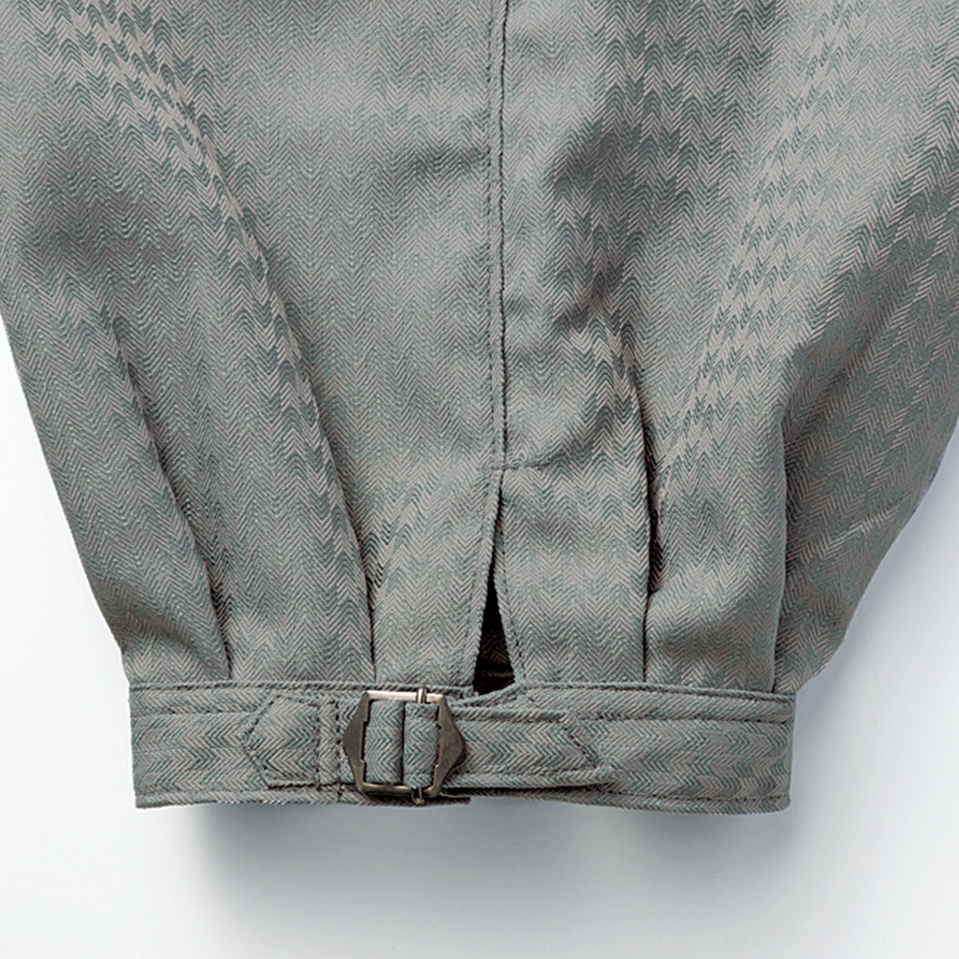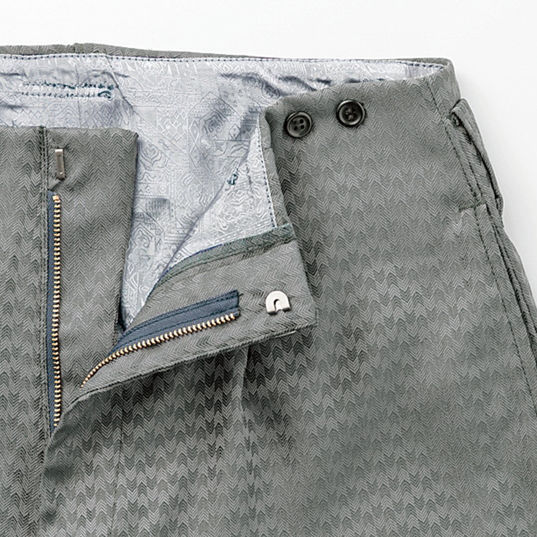 光沢感のある昼夜織りとヘリボーン柄の組み合わせが独創的なスタイリングを可能にします。