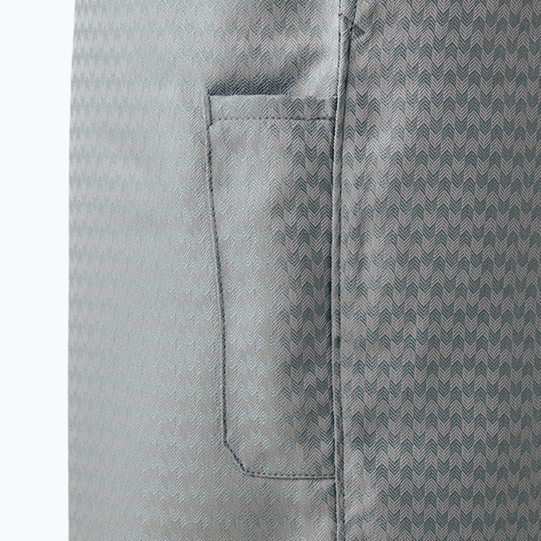 シンプルなスタイルには、昼夜ヘリンボーン素材が新しい個性をプラス。