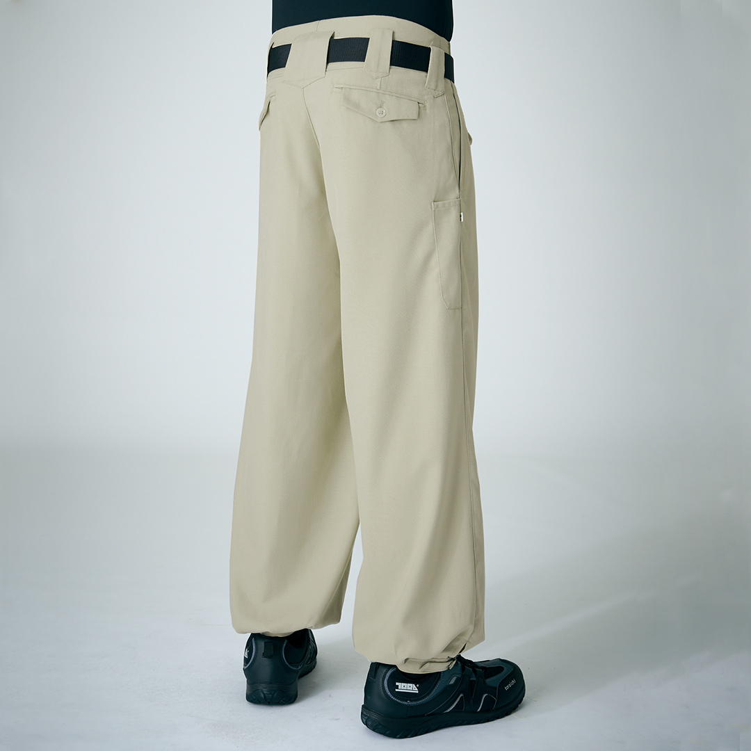 動きやすいニッカスボンに、ラフさのあるサージ素材を採用した一着。