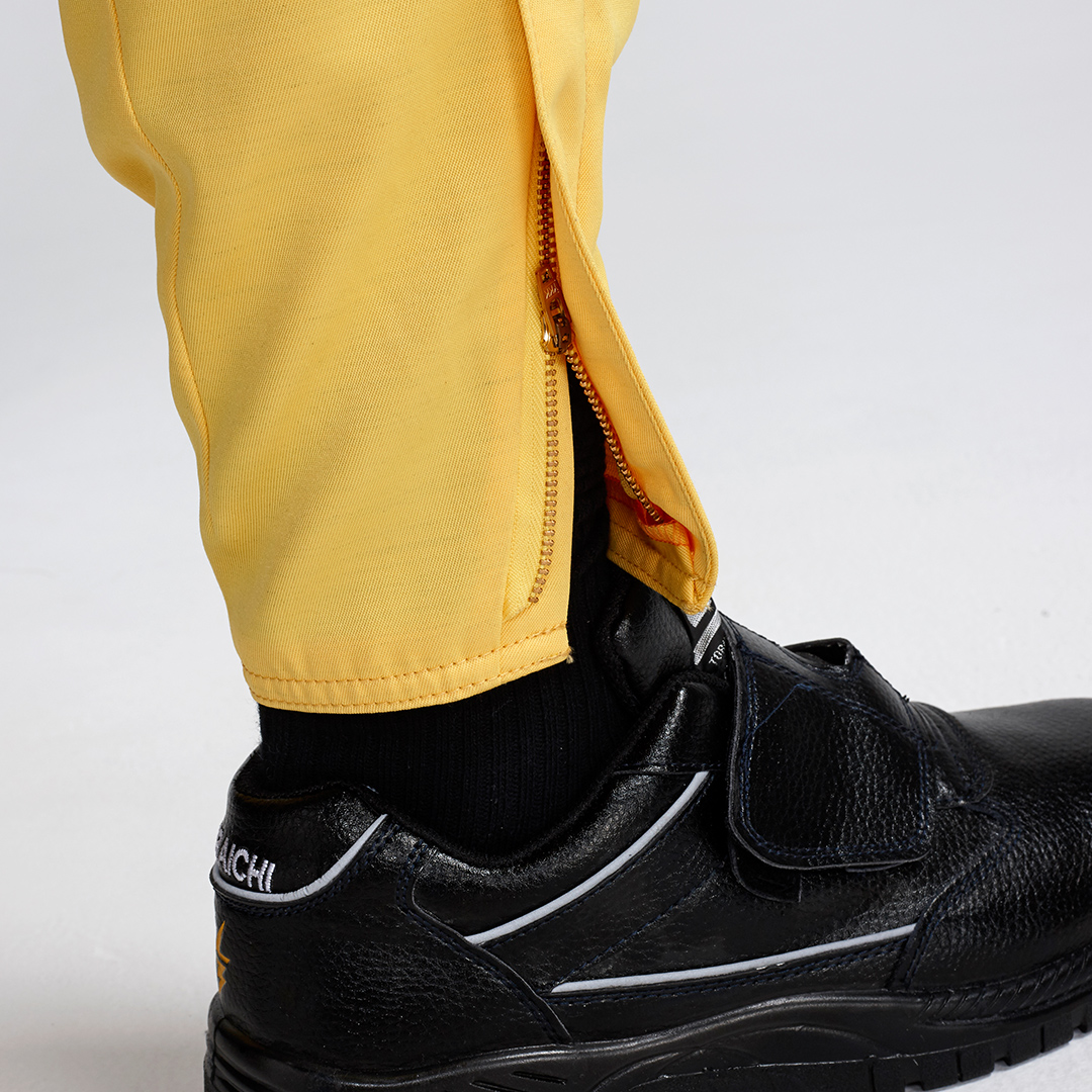 耐久性、イージーケア性にすぐれたポリエステルに、吸汗性や肌ざわりのいい綿をプラスした綿混紡素材。静電防止素材なので、静電気の発生を抑え安全性もアップ。ゴミやホコリが付きにくく、清潔感があります。