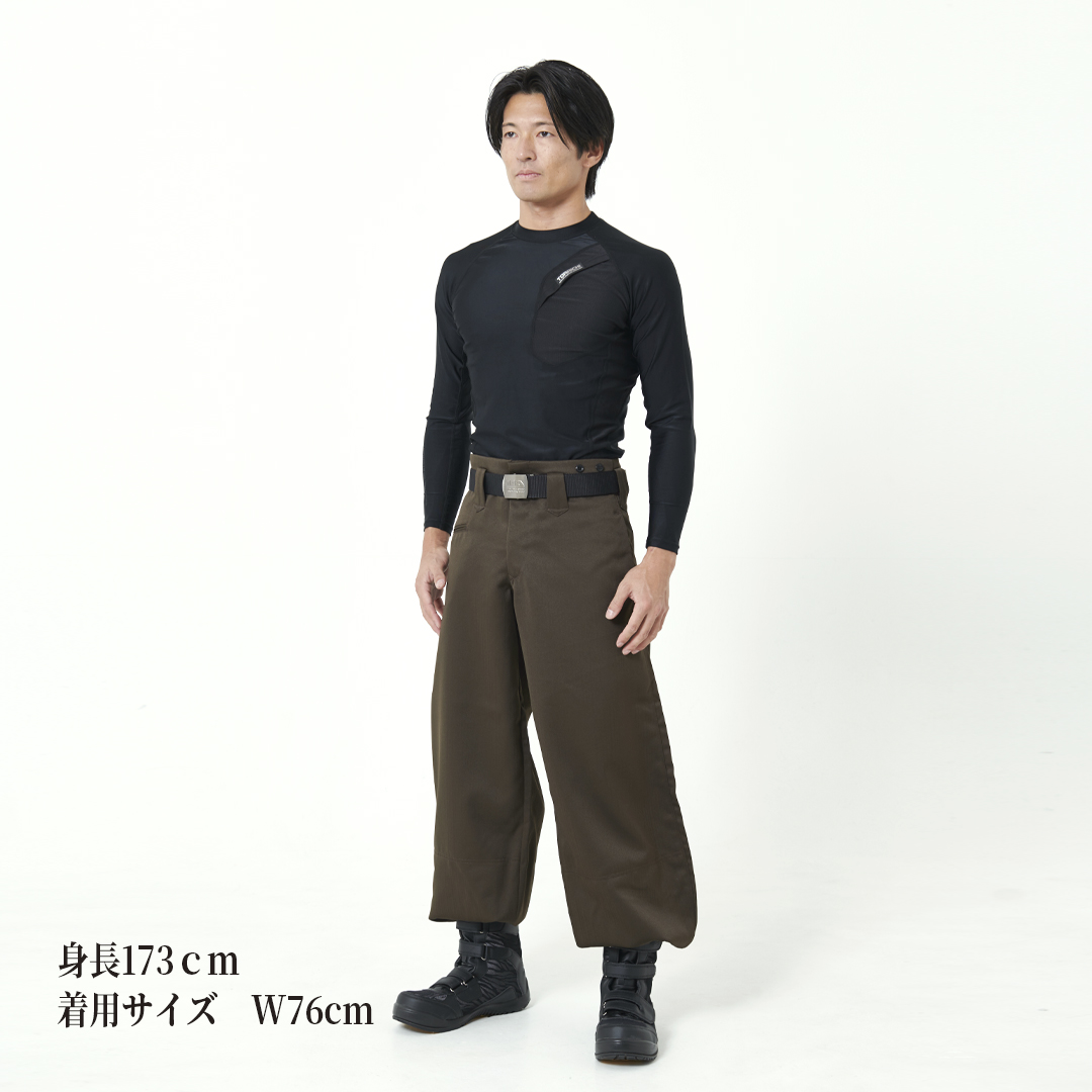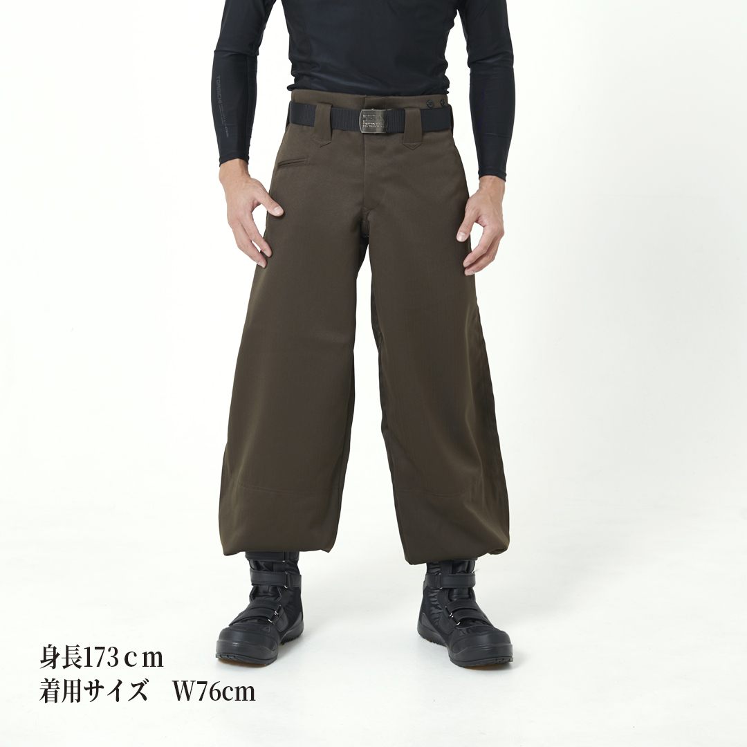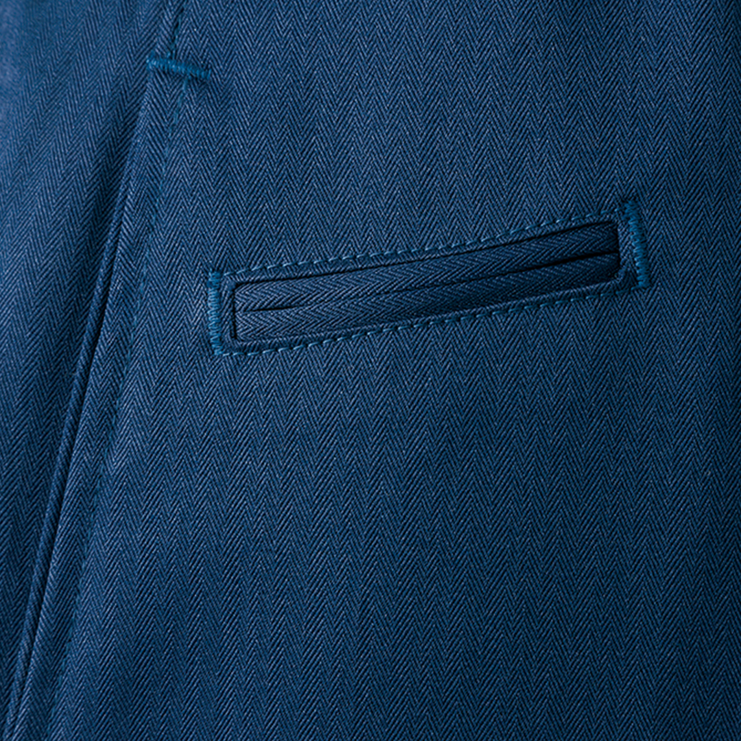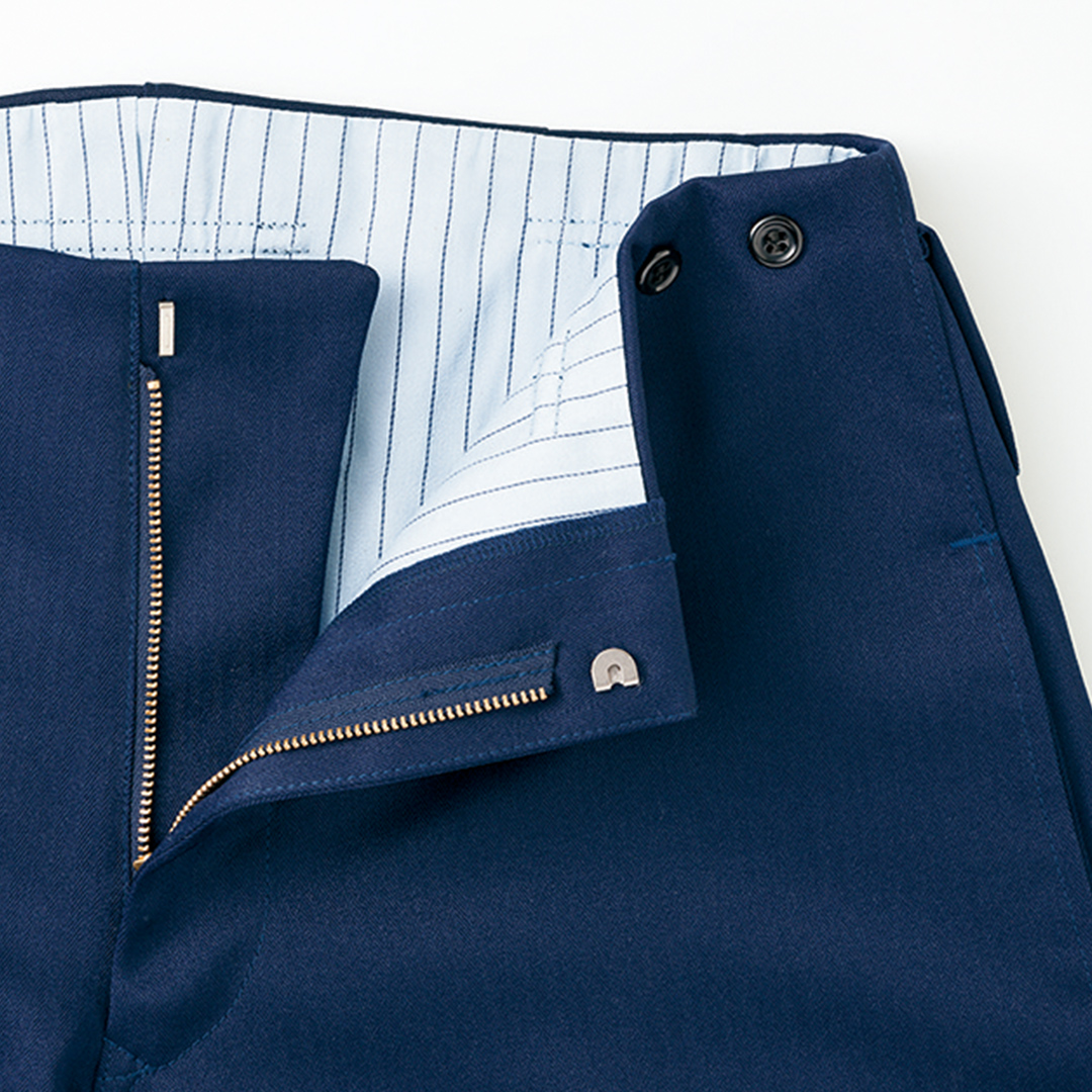 細身シルエットにさりげないミニヘリンボーン柄が魅力の「ブルーラベル寅壱」。