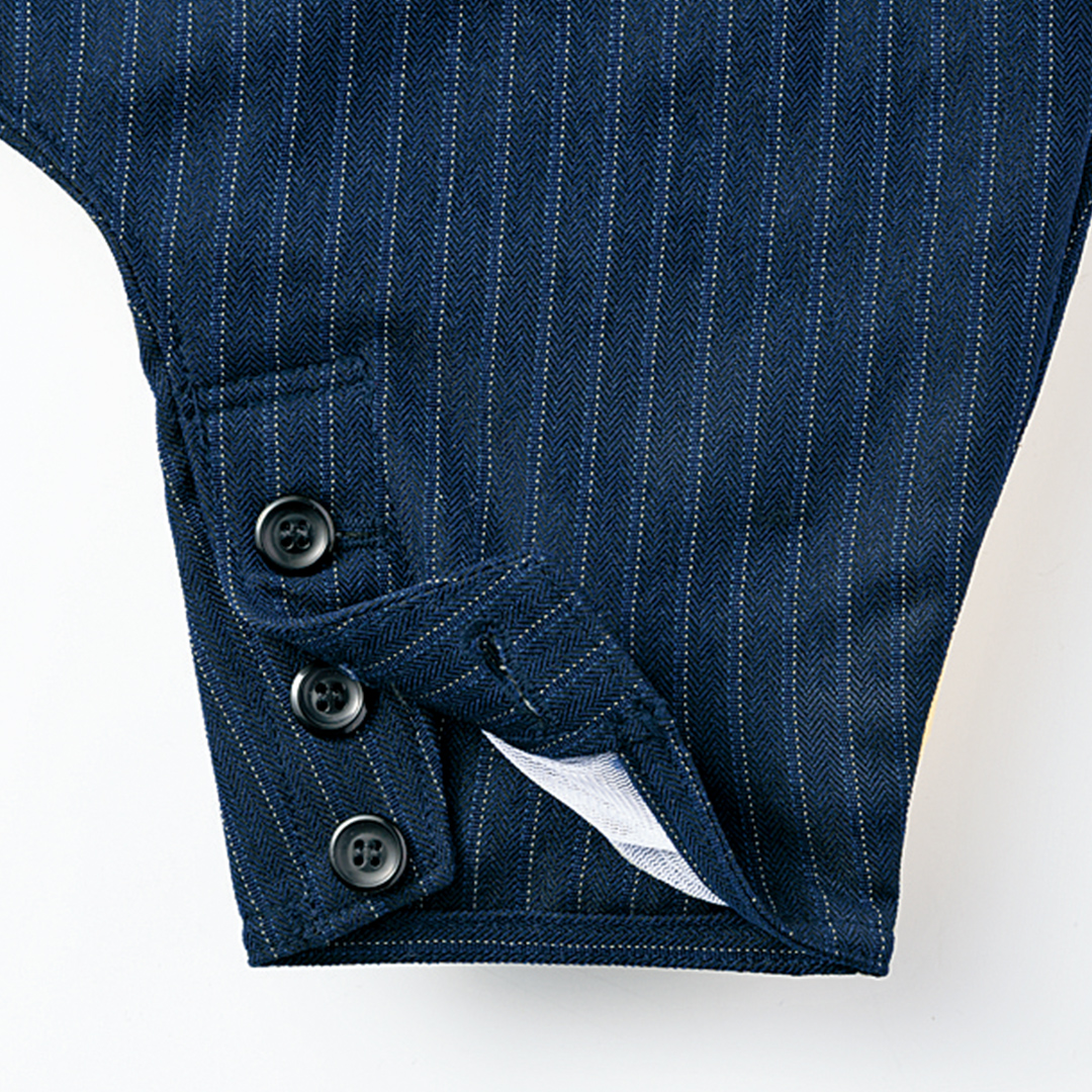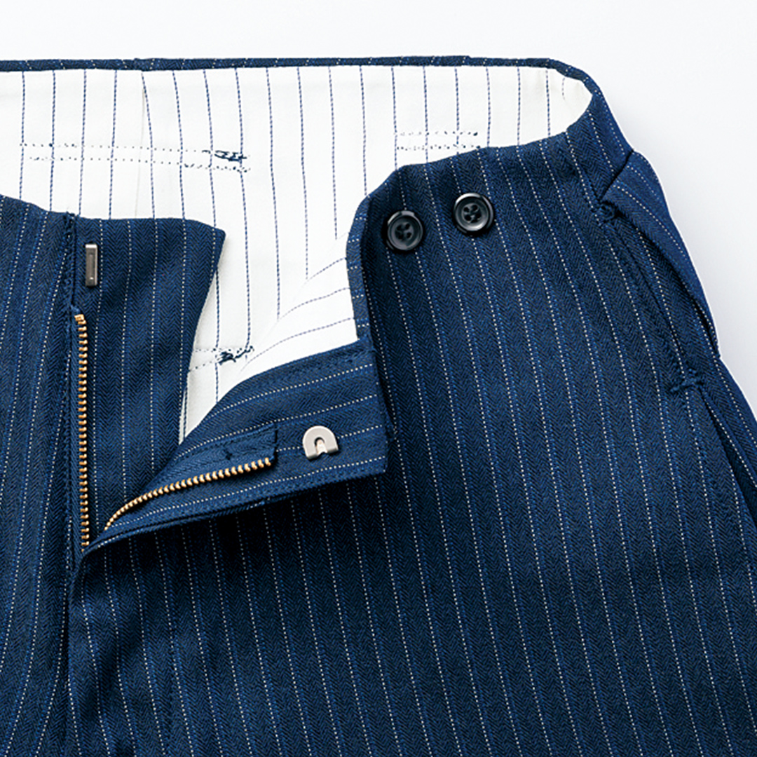 シックなカラーとピンストライプの表面感がジェントリーな雰囲気を醸します。