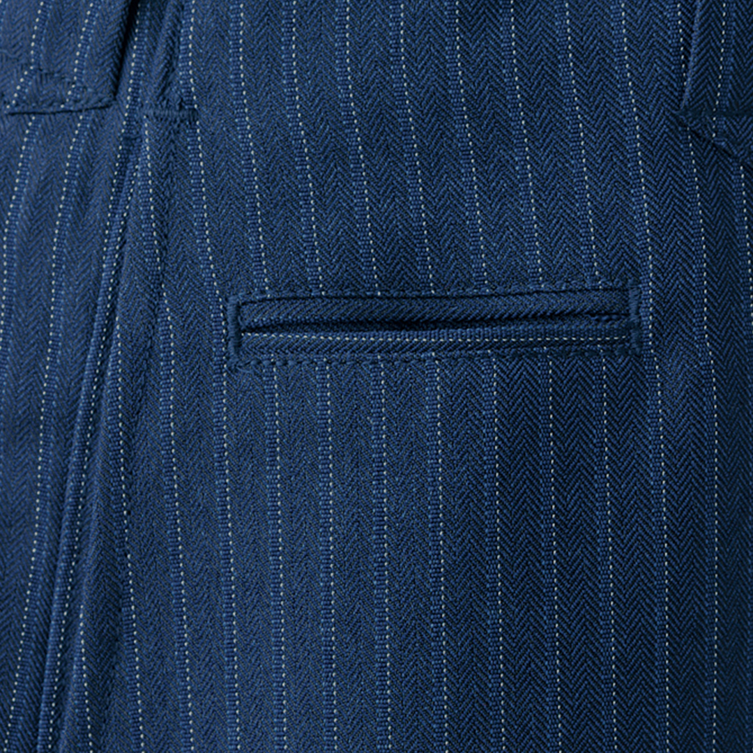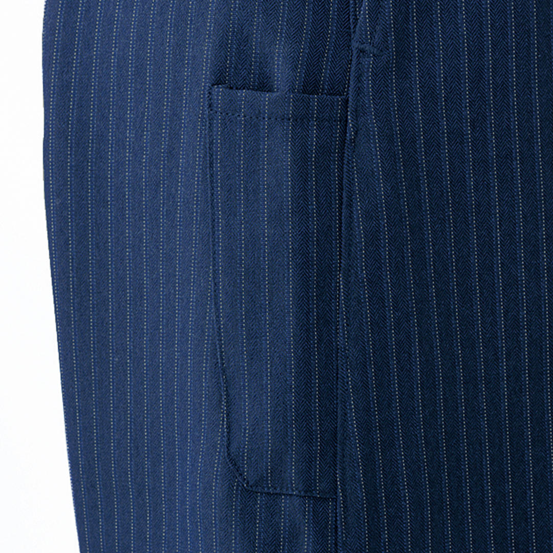 変わり織+ピンストライプの個性派。もちろん、ポリエステル100%で、タフさは折り紙付き。