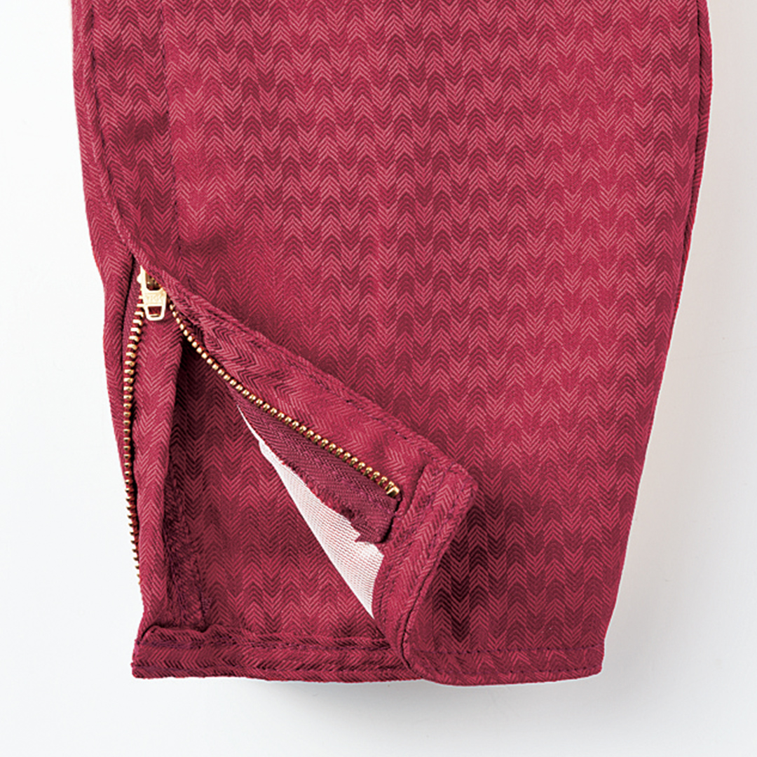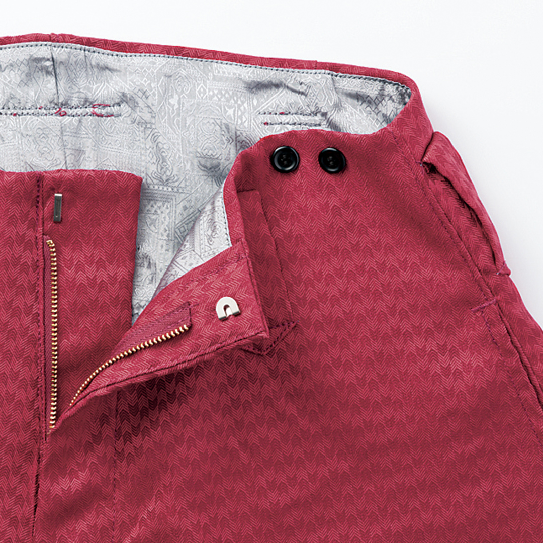 光沢感のある昼夜織りとヘリボーン柄の組み合わせが独創的なスタイリングを可能にします。