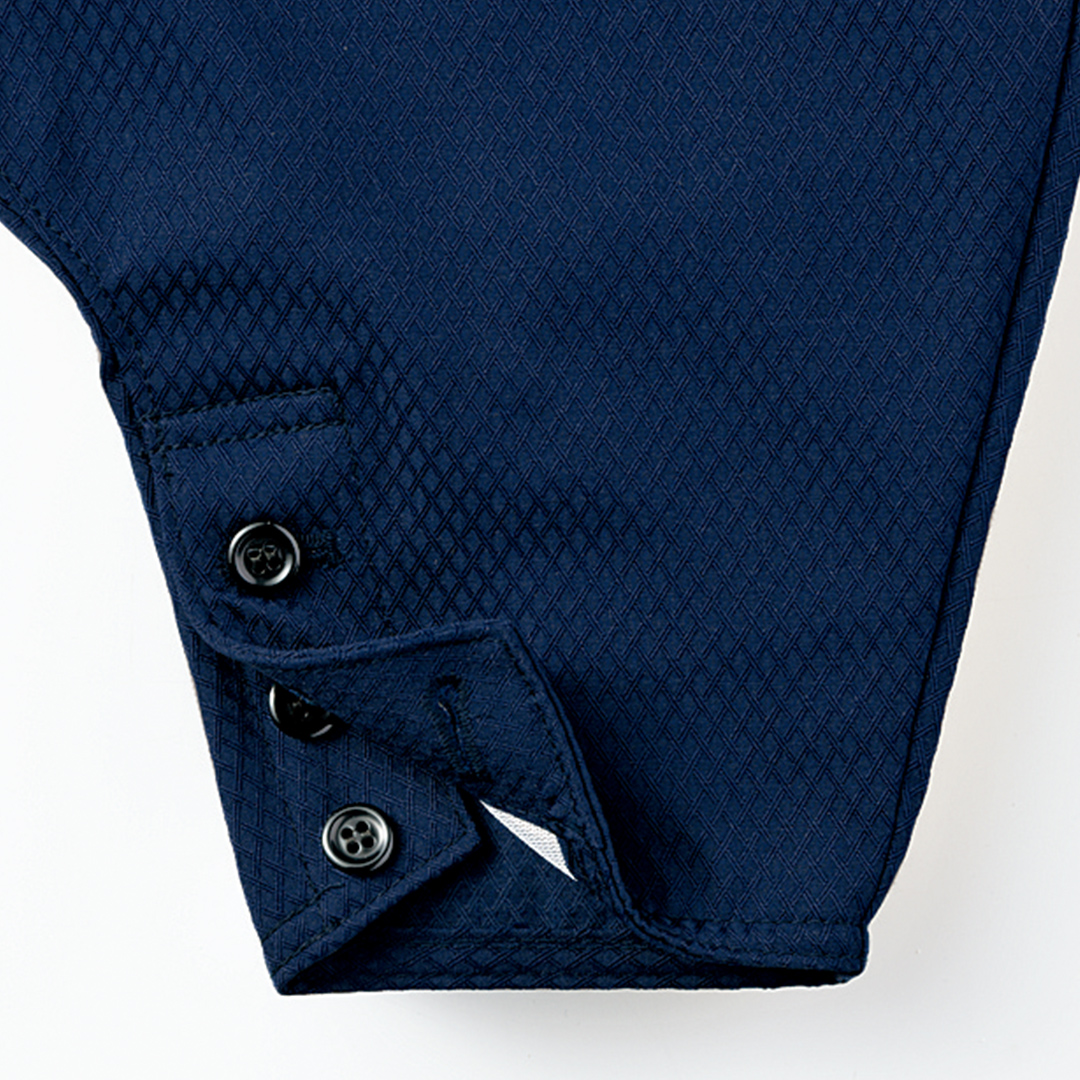 耐久性、イージーケア性にすぐれたポリエステルに、吸汗性や肌ざわりのいい綿をプラスした綿混紡素材。