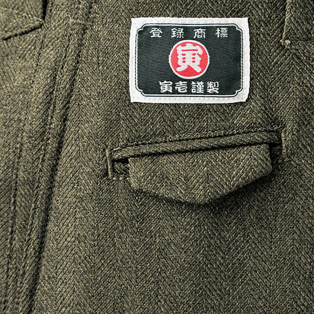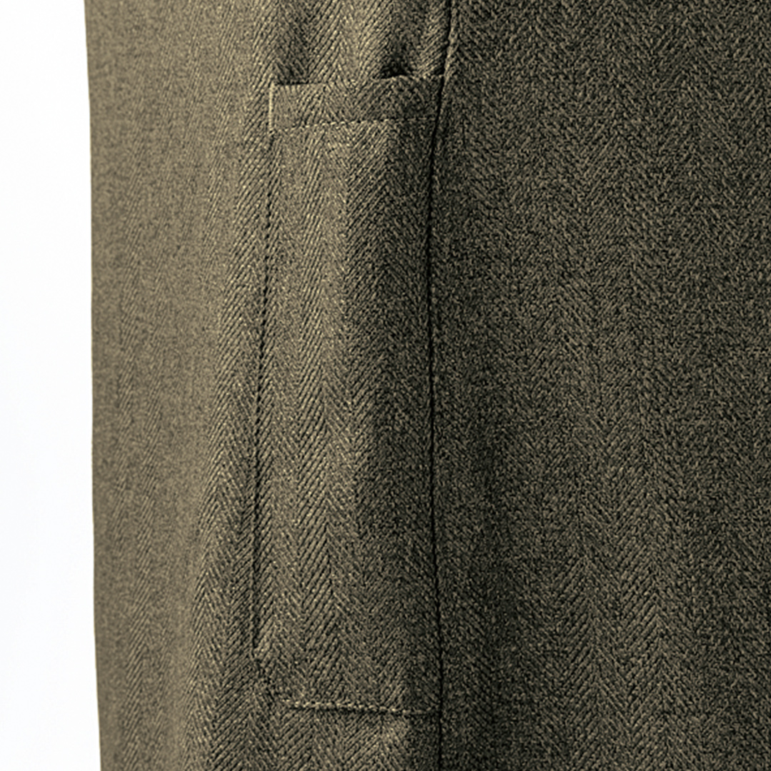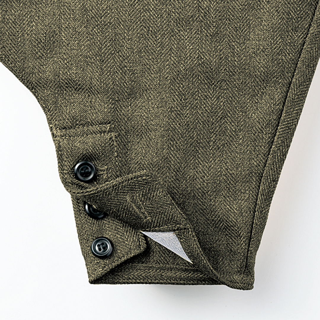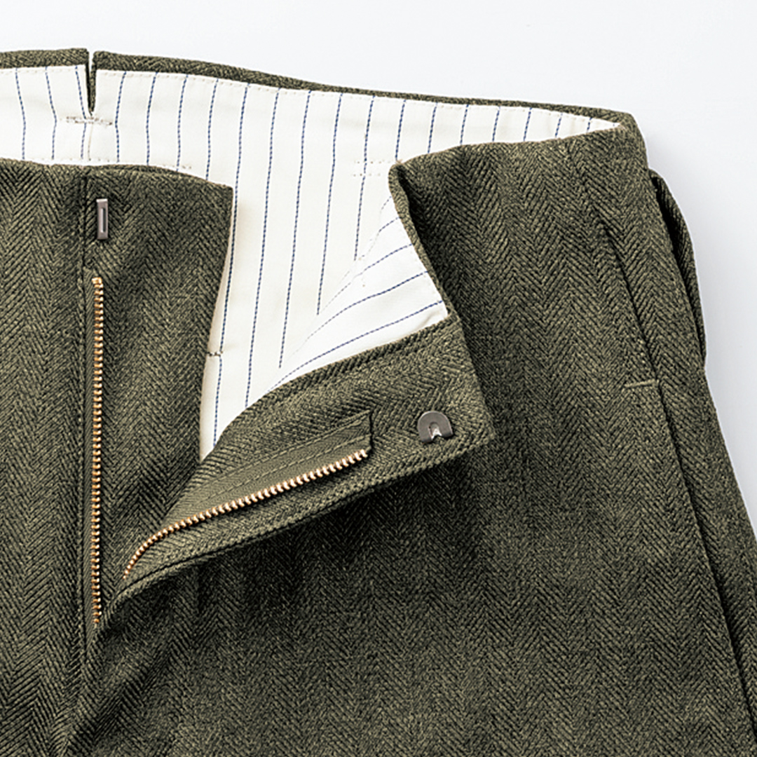 ヘリンボーン柄の表面感はウールを思わせる温かみのある雰囲気。