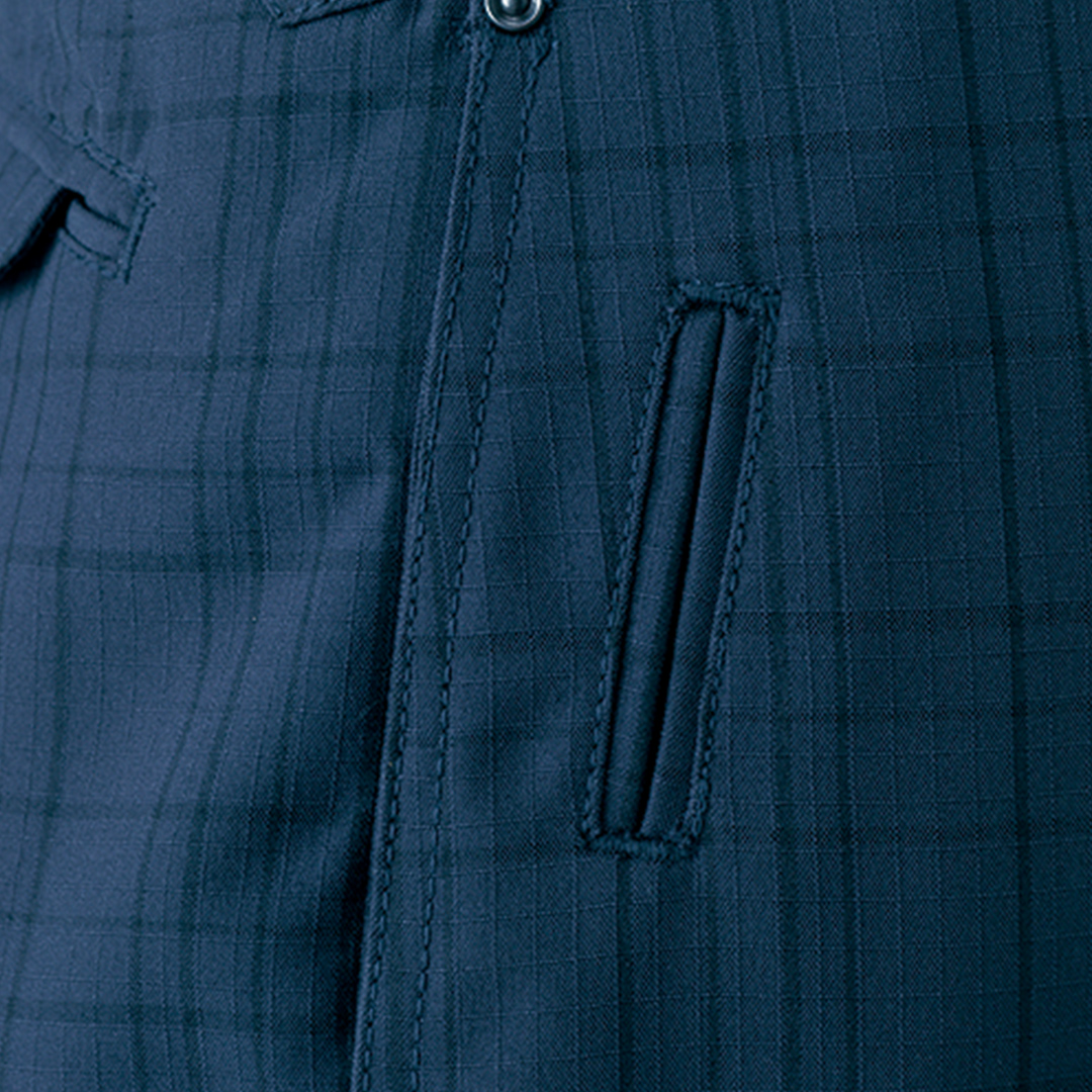 耐久性、イージーケア性にすぐれたポリエステル素材。度重なる洗濯にもタフな機能を発揮します。表面は高級感あふれるオンブレーチェック。