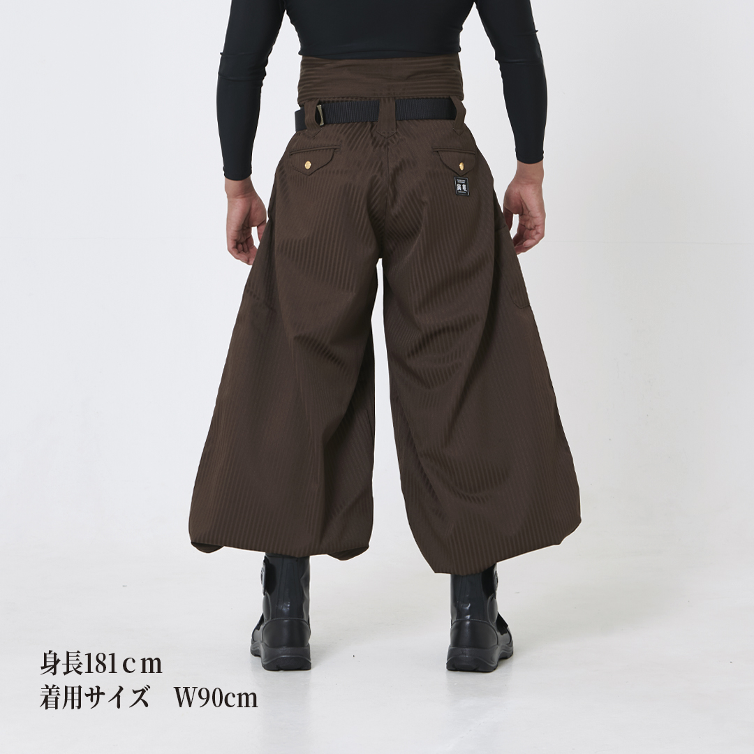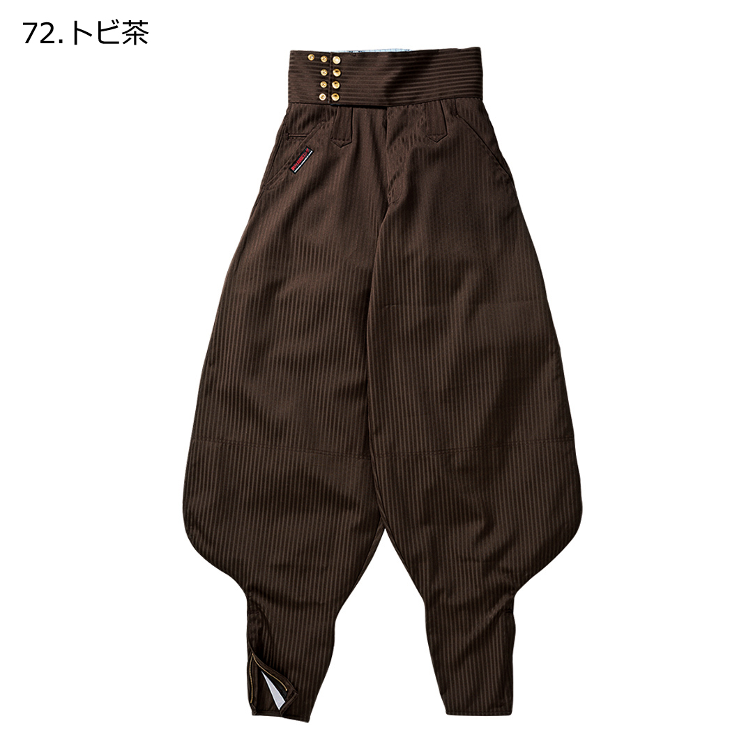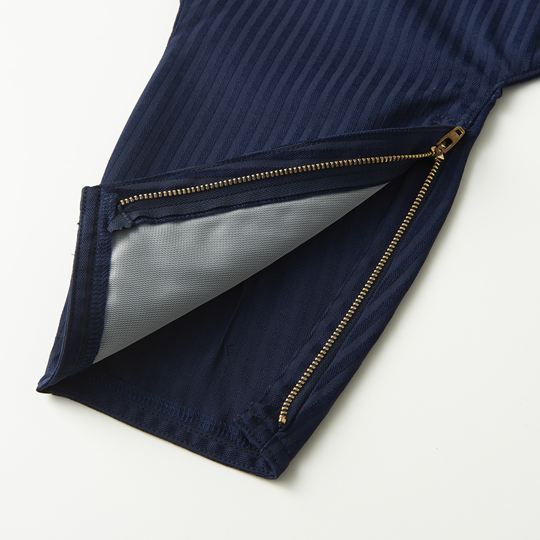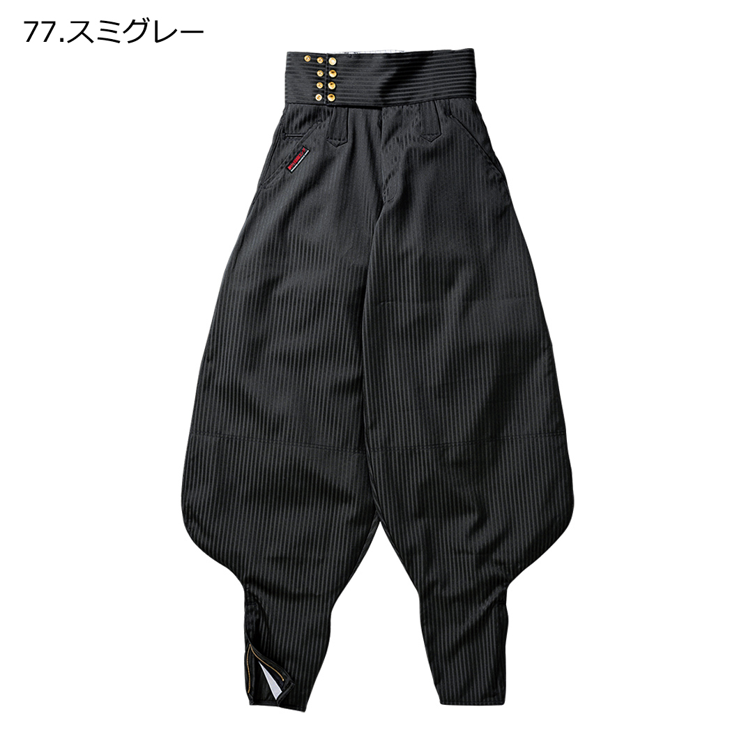 何といっても胴付きの厳つい印象、ゴールドボタンの独創性が魅力。プロが認める仕様も随所に見られ、本物志向に応える一着と言えるでしょう。素材は、存在感を感じさせる昼夜織り。