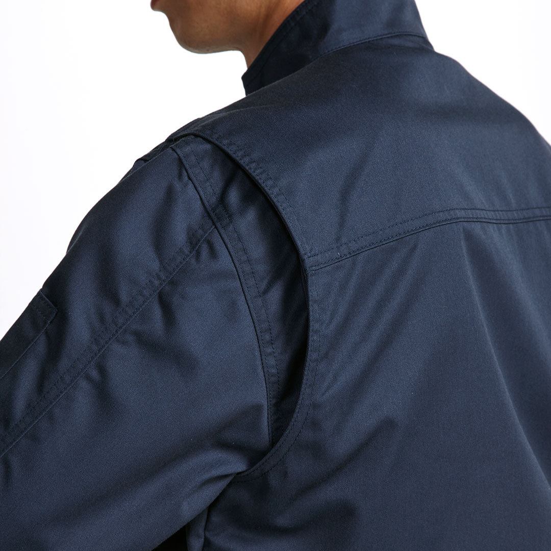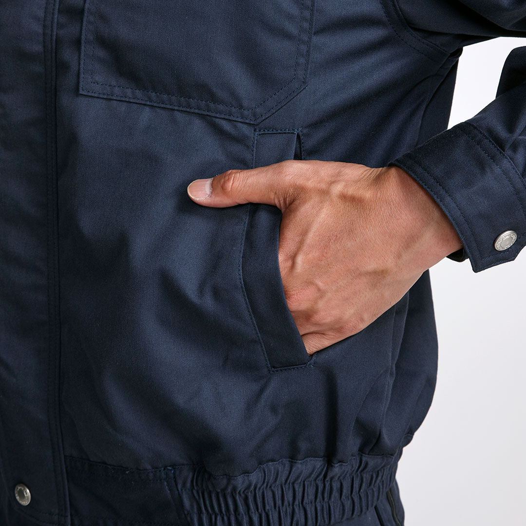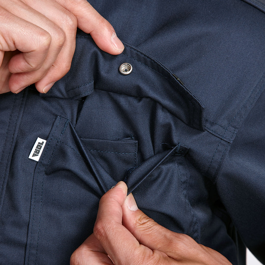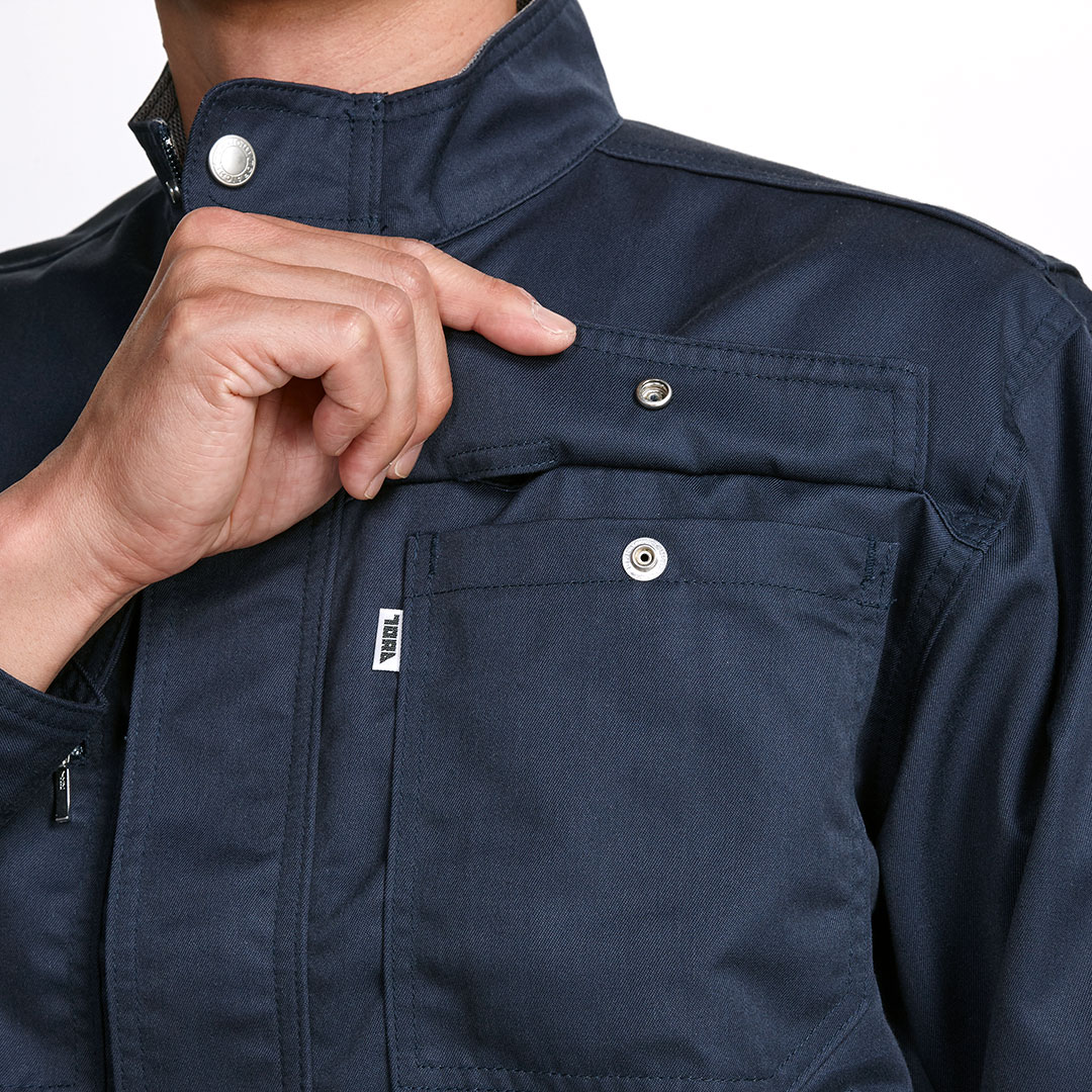 背身ノーフォークや裾のシャーリング、衿裏メッシュなどの機能も非凡さを感じさせます。