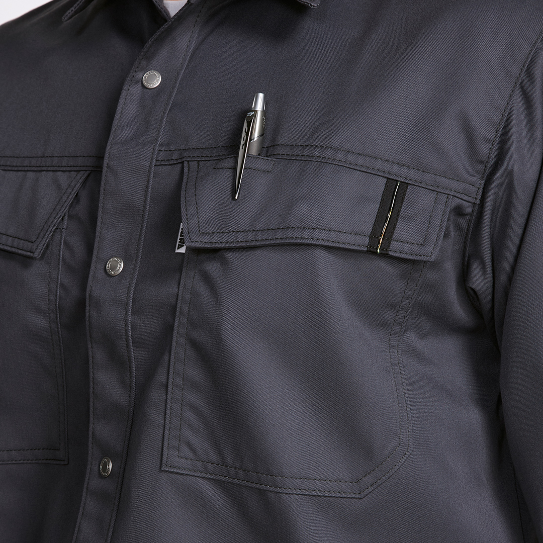 ※右胸ポケットの上部ラインが斜めの際にポケットに沿って刺繍を行います。