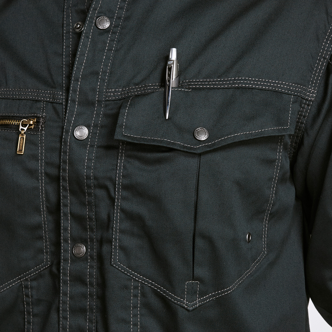 左右非対称の胸ポケットや上品な色展開が、洗練された印象を醸し出します。