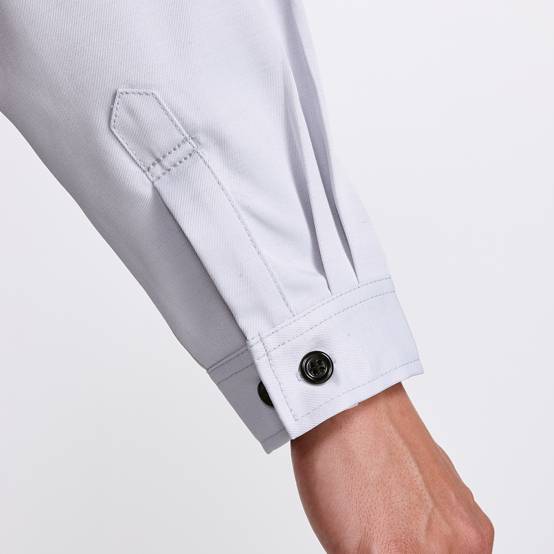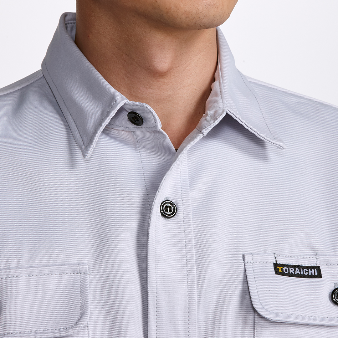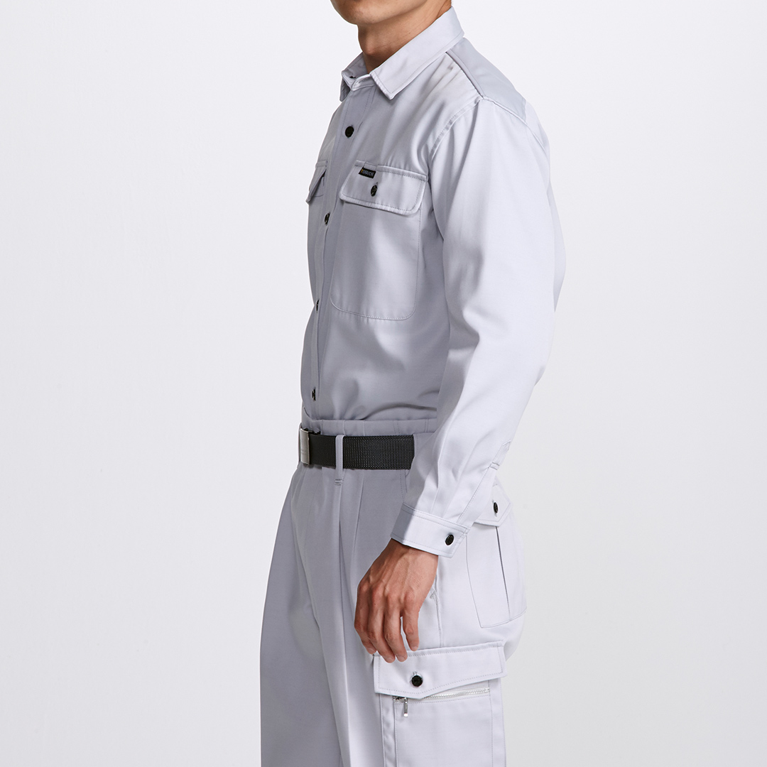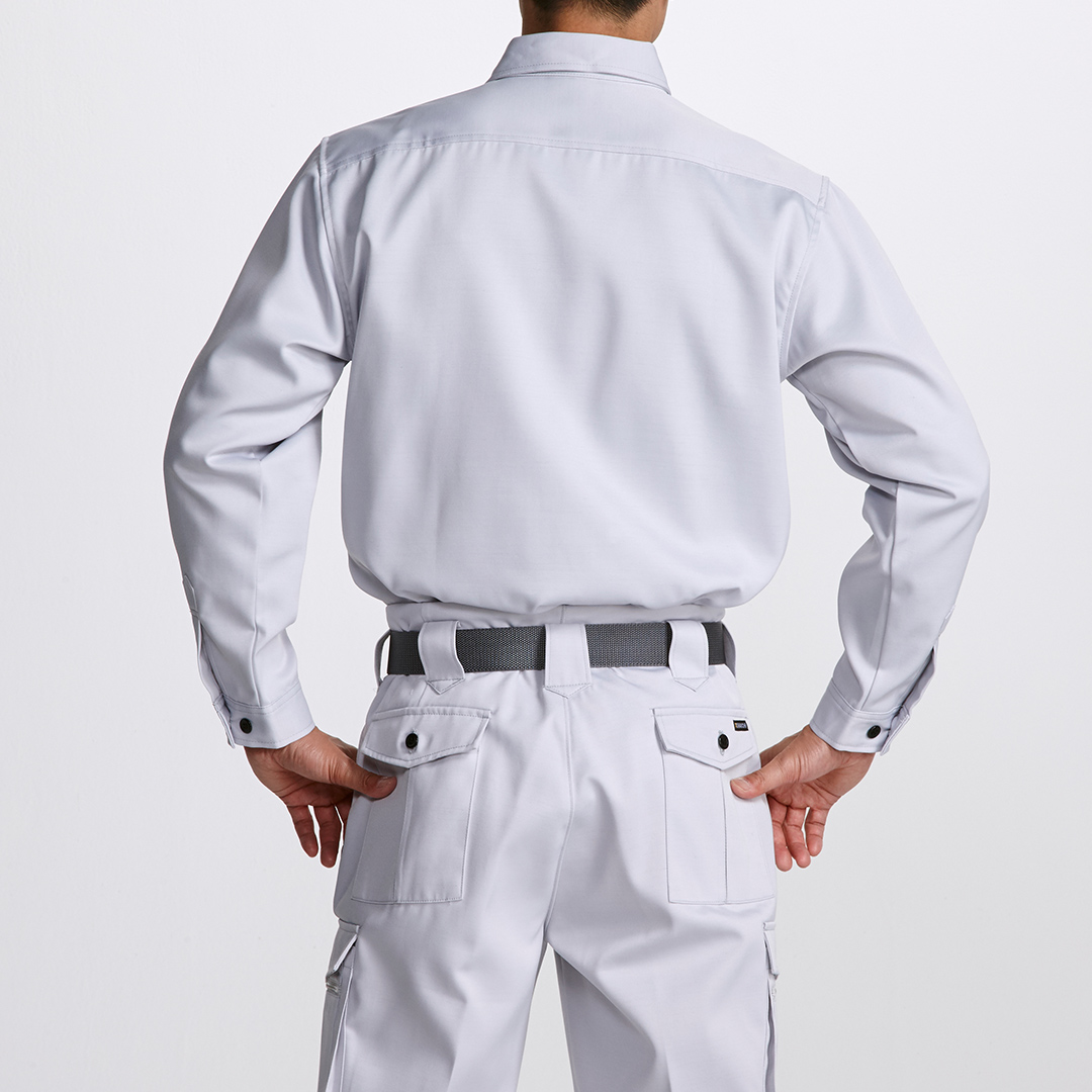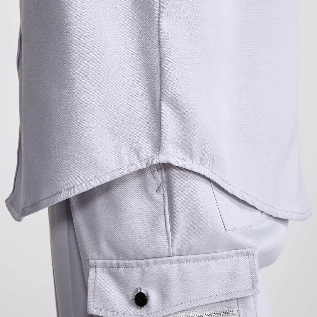 大きな胸ポケットにボタン使いの仕様という、まじめ一筋のスタイル。