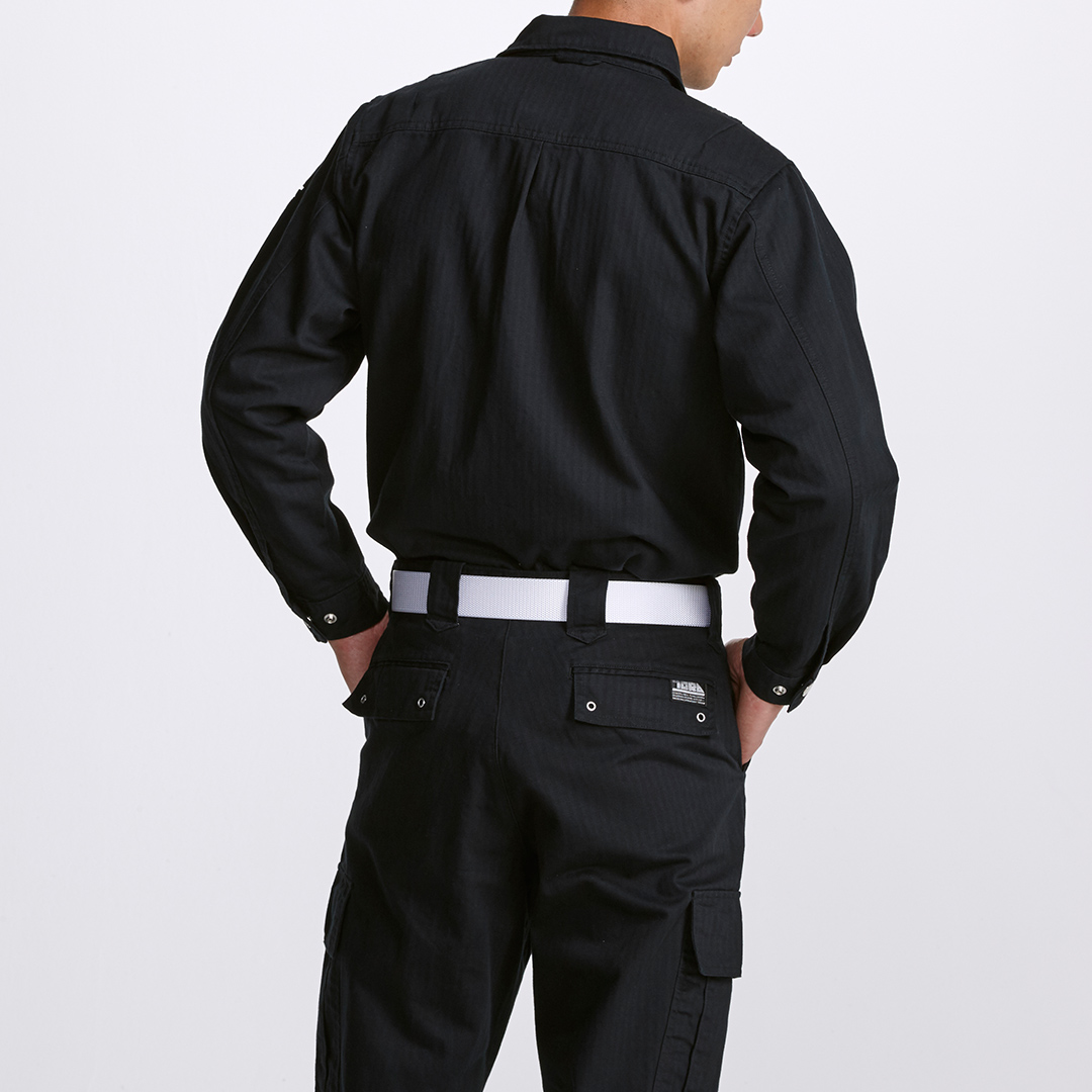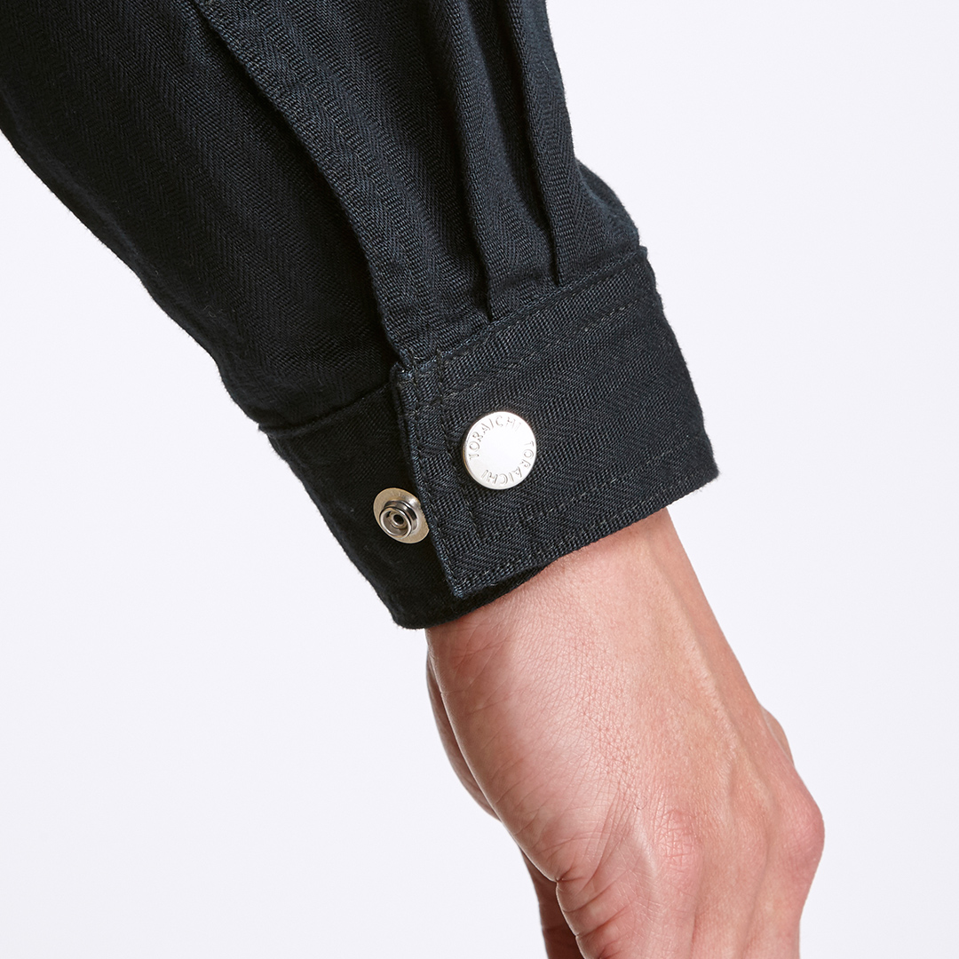 フロント部は比翼仕立てのためボタンが見えず、すっきりとした雰囲気。