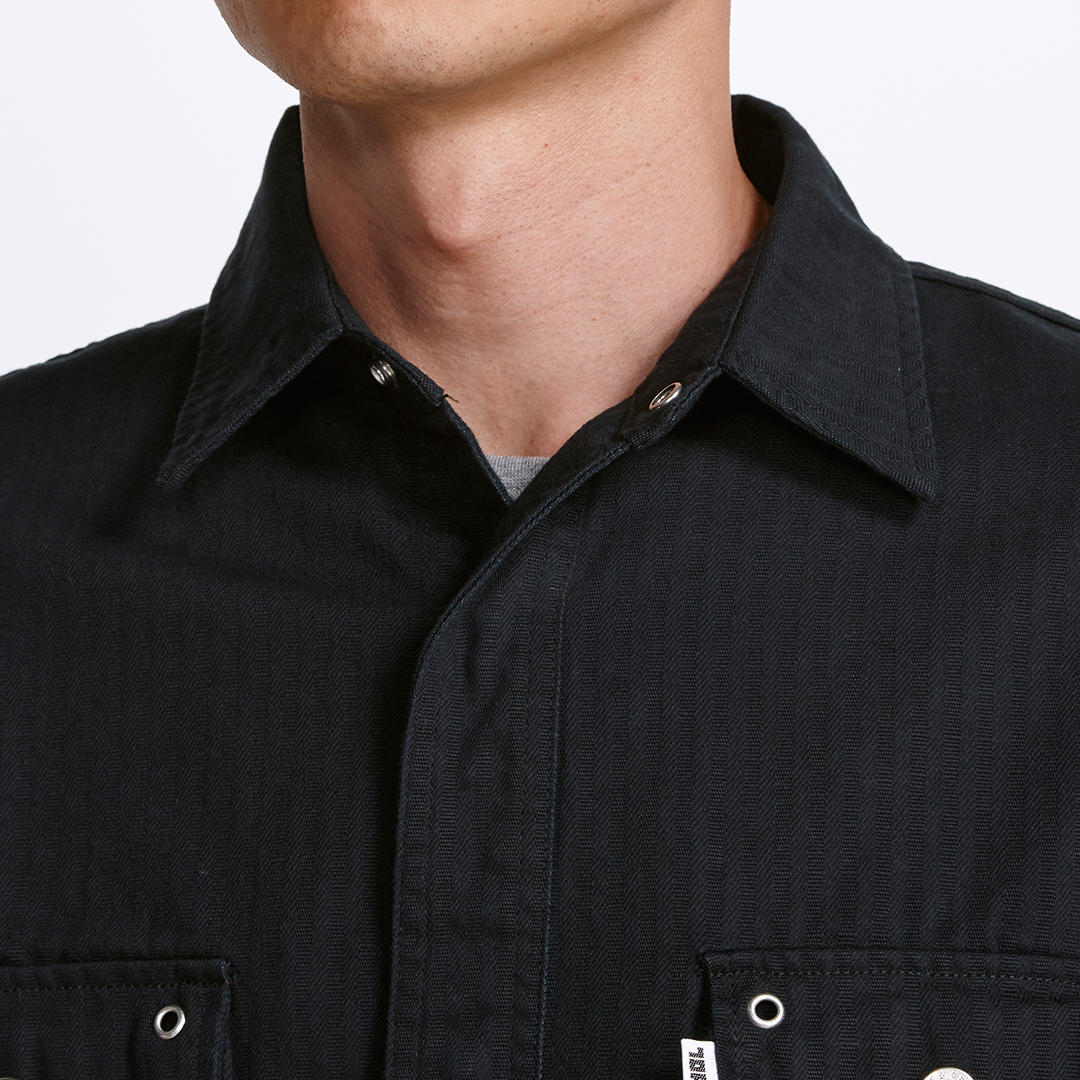 要所に施されたメタルのドットボタンがワイルド感を強調します。