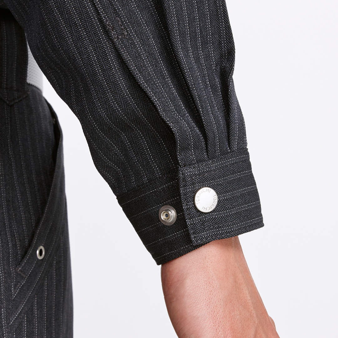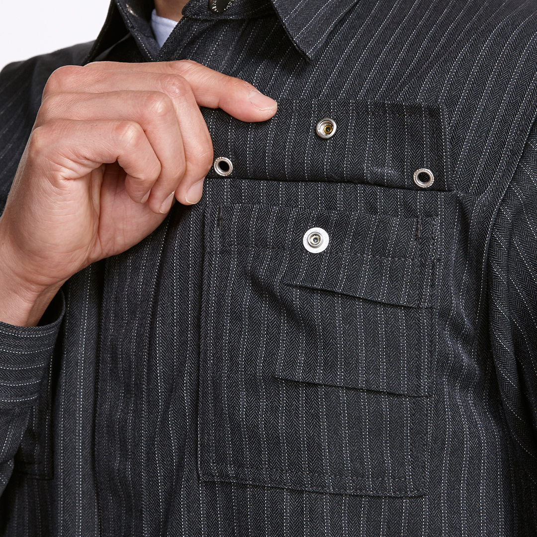 変わり織りというだけでも個性的ですが、さらにピンストライプを加えた個性派。