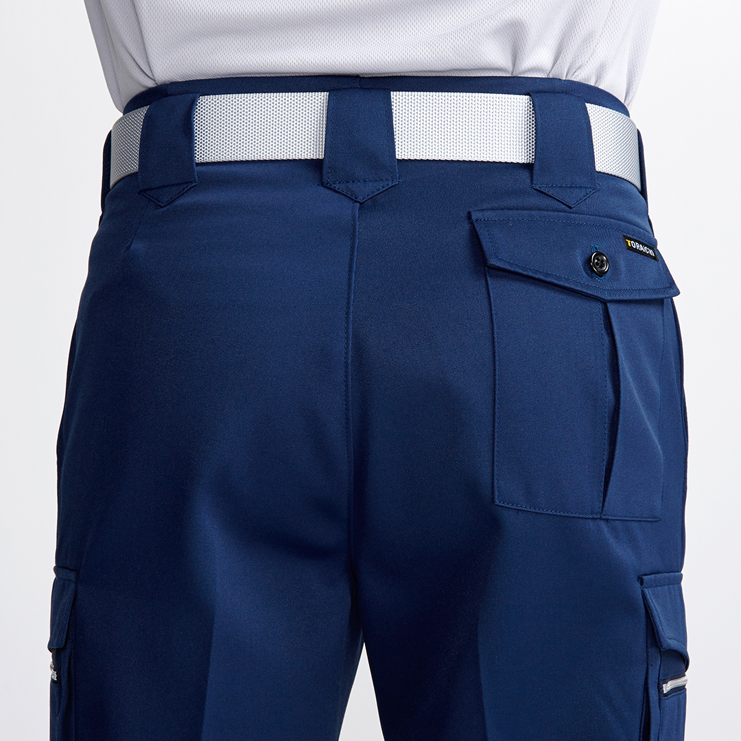 太いベルト通しと大きなポケット。仕事を支えるタフな機能。