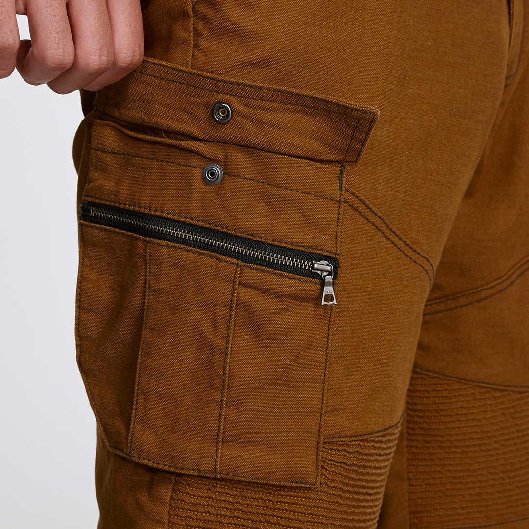 ●前後に大容量カーゴポケット (タック・プリーツ・ファスナー)