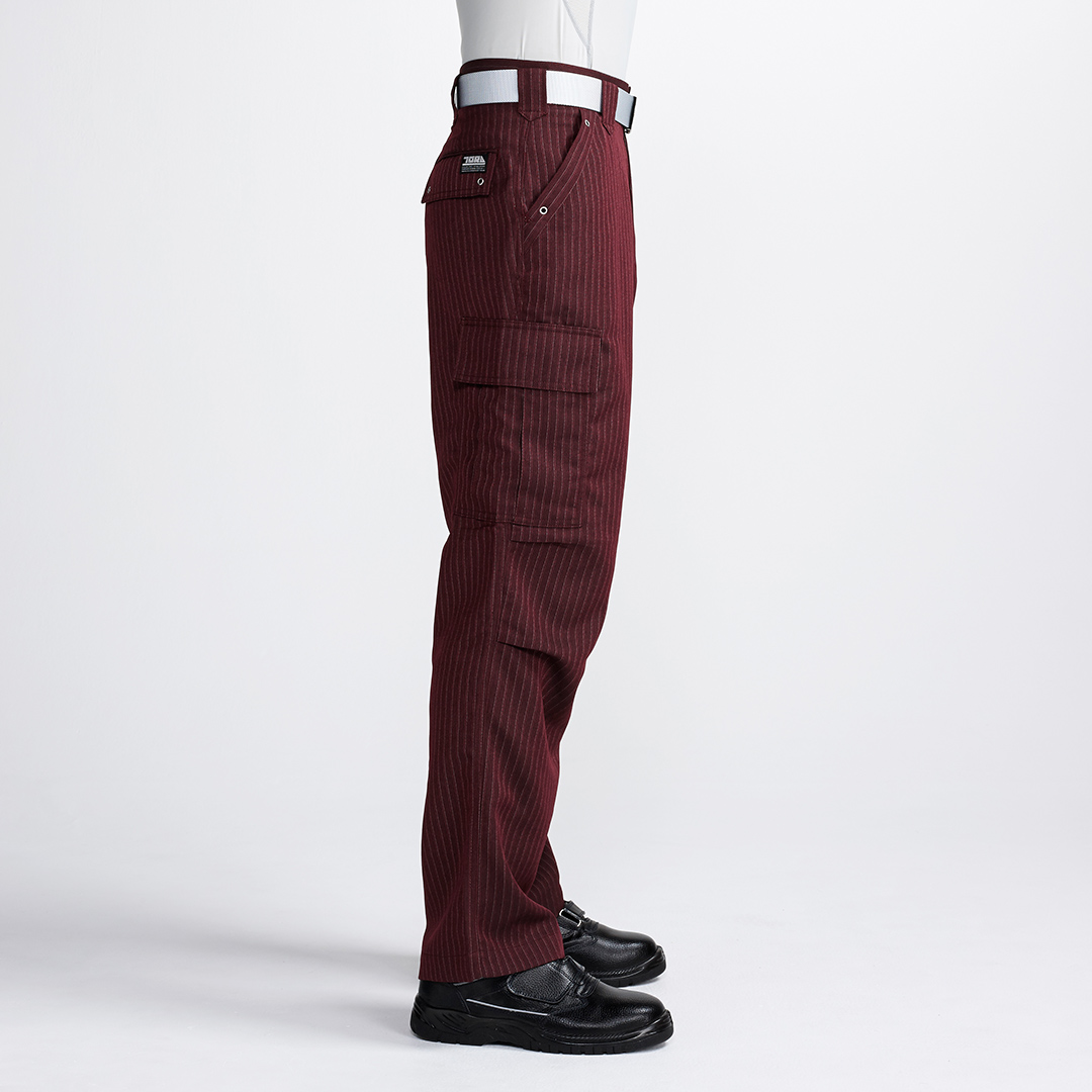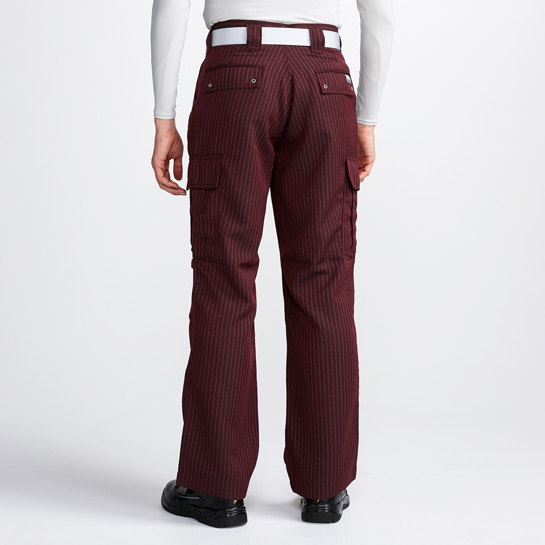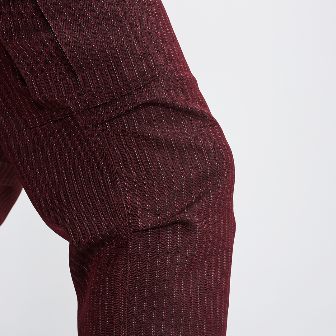 ピンストライプによる効果でタイトに見えるものの、シルエットは意外にゆったり。