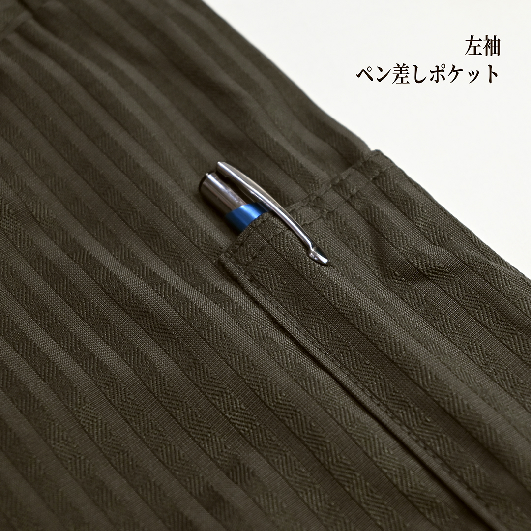 ※袖にペン差しがある場合、一部の商品を除き特に指定が無い場合はペン差しの上側への刺繍となります