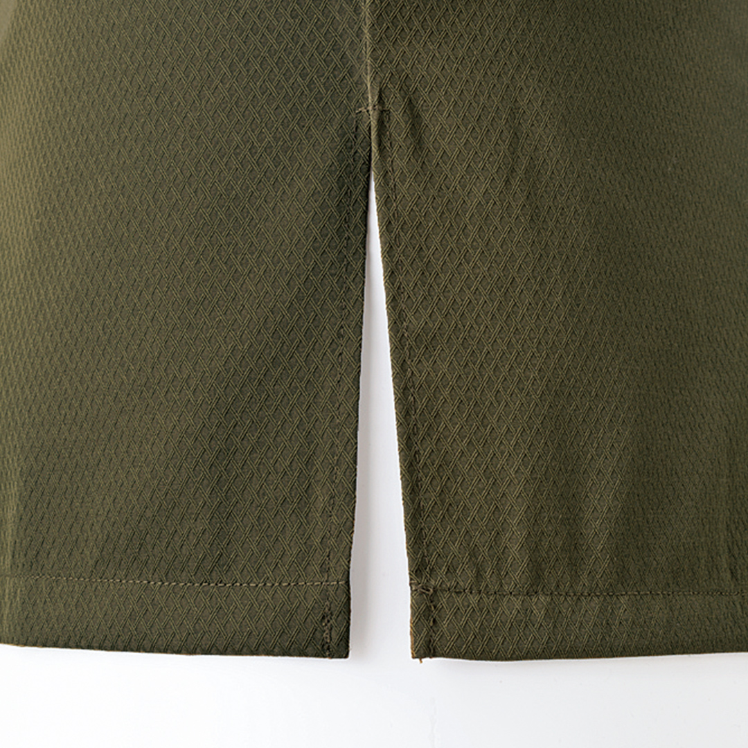 ※右胸ポケットの上部ラインが斜めの際にポケットに沿って刺繍を行います。