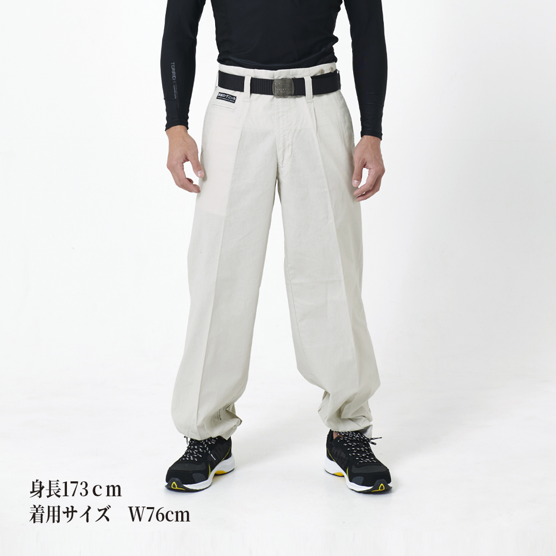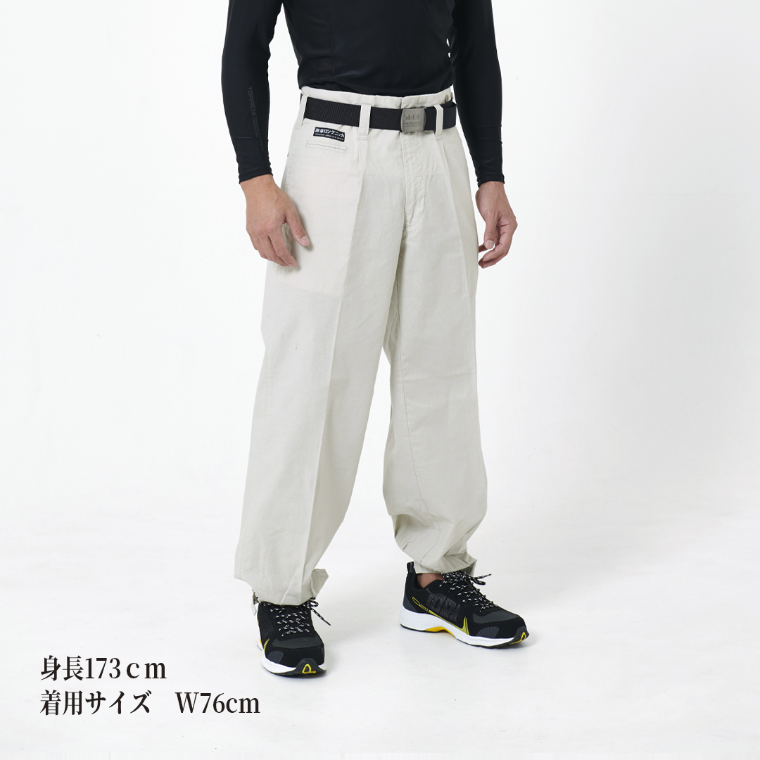 やや長めのニッカスボンは、動きやすさに定評があります。スボン感覚できられ、足元はより安全。素材の通気性と涼感にすぐれたサマーコットン。ソフトなフィーリングや吸汗性、タフさも兼備しています。