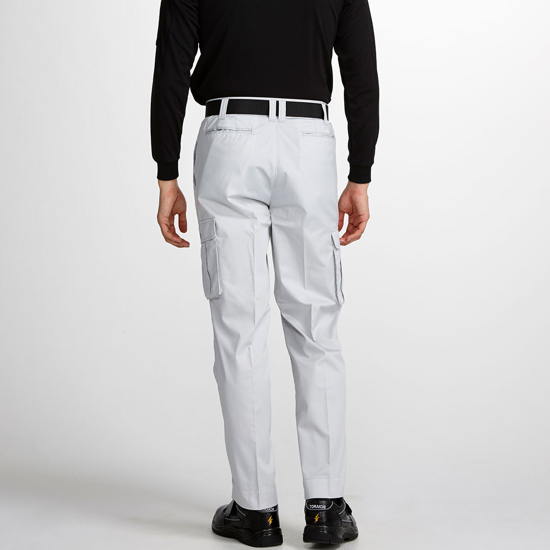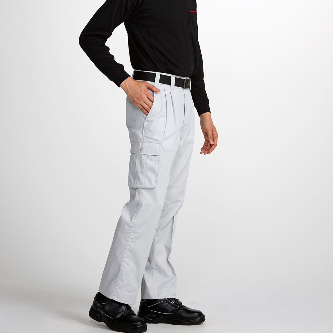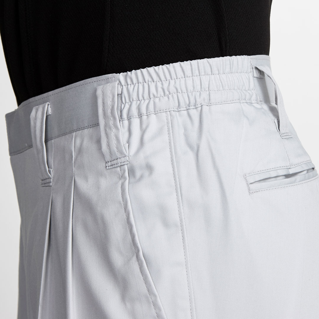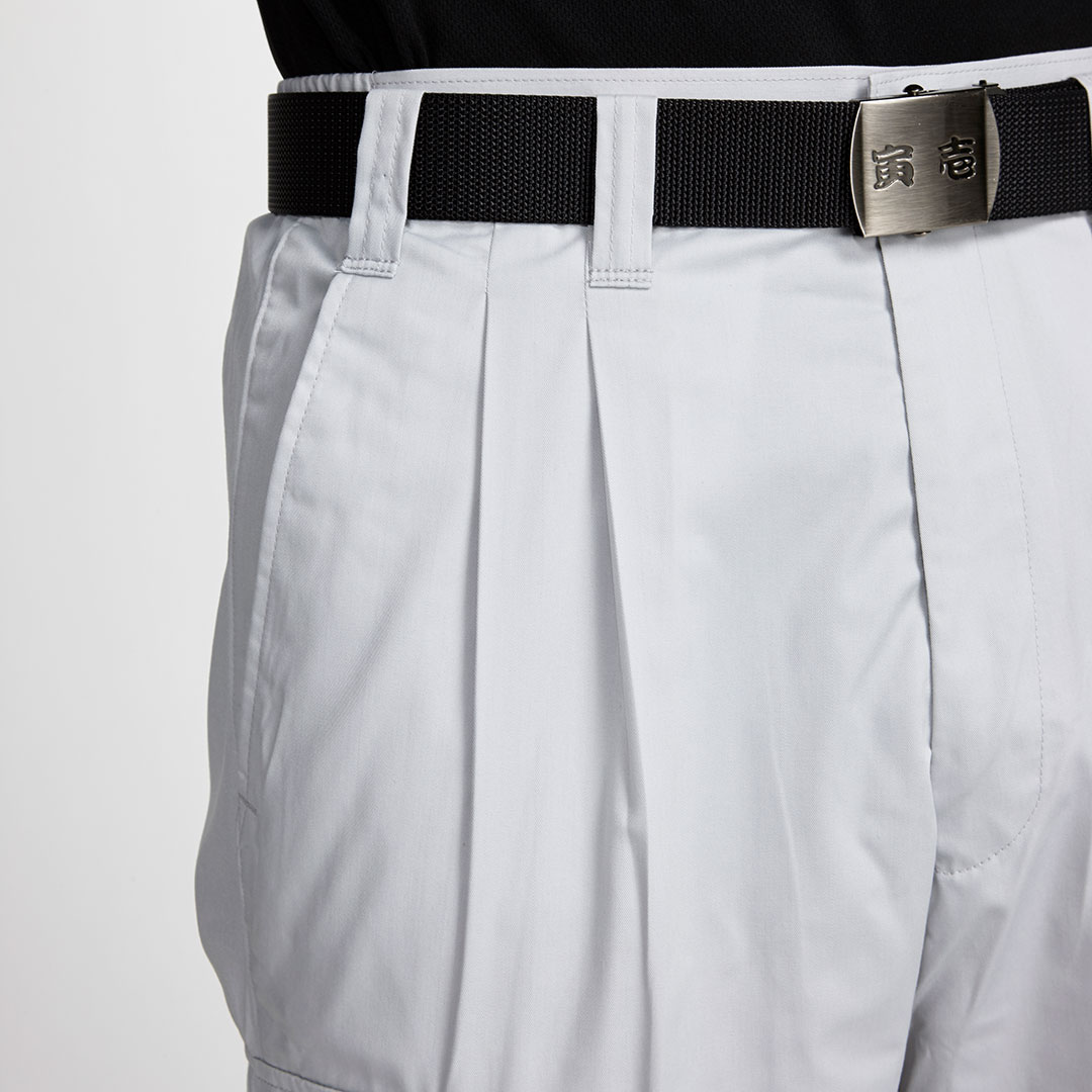 ムリなく動けるツータックに、脇シャーリングを採用したパンツ。