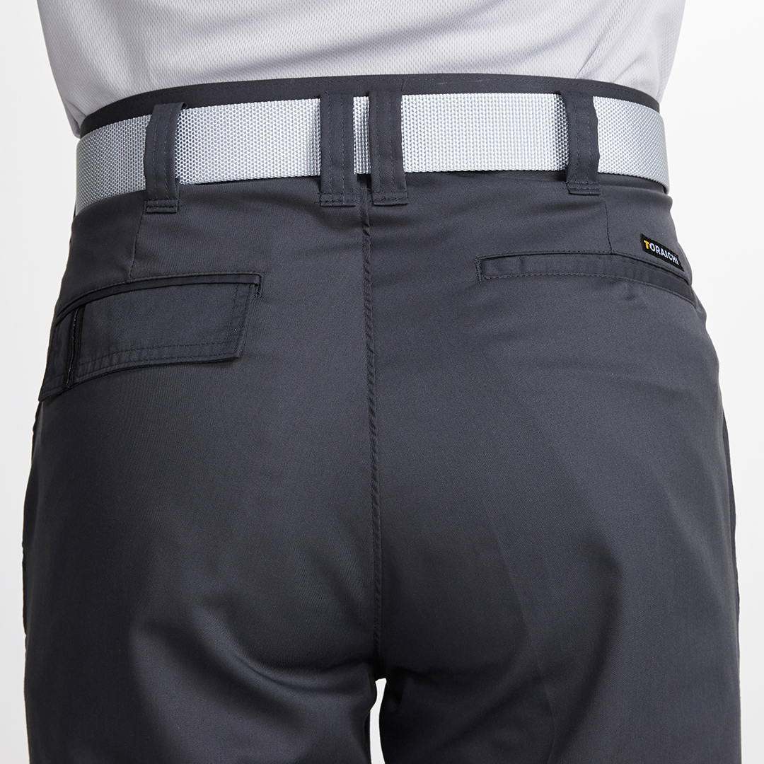 スタイリッシュでいて、下腹も窮屈感のないワンタックを採用しました。