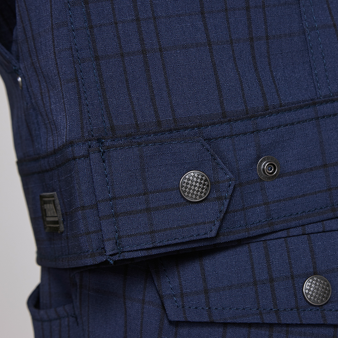 収納力のある二重パッチポケットやメタル使いのディテールなど、細部にも独自のアイデア。