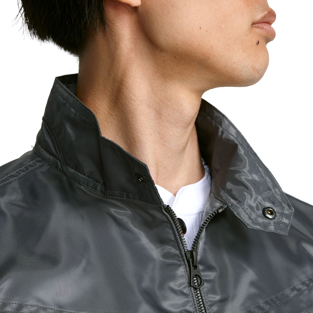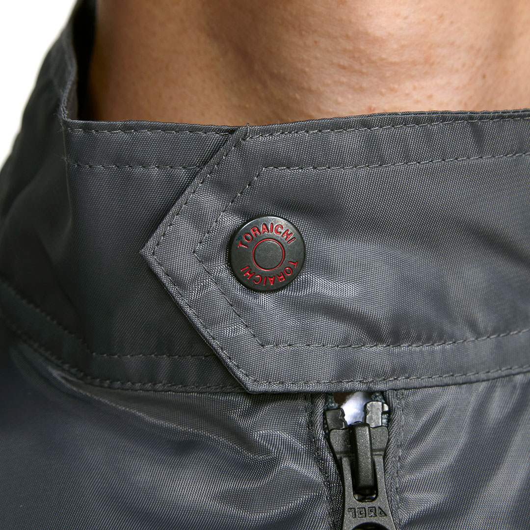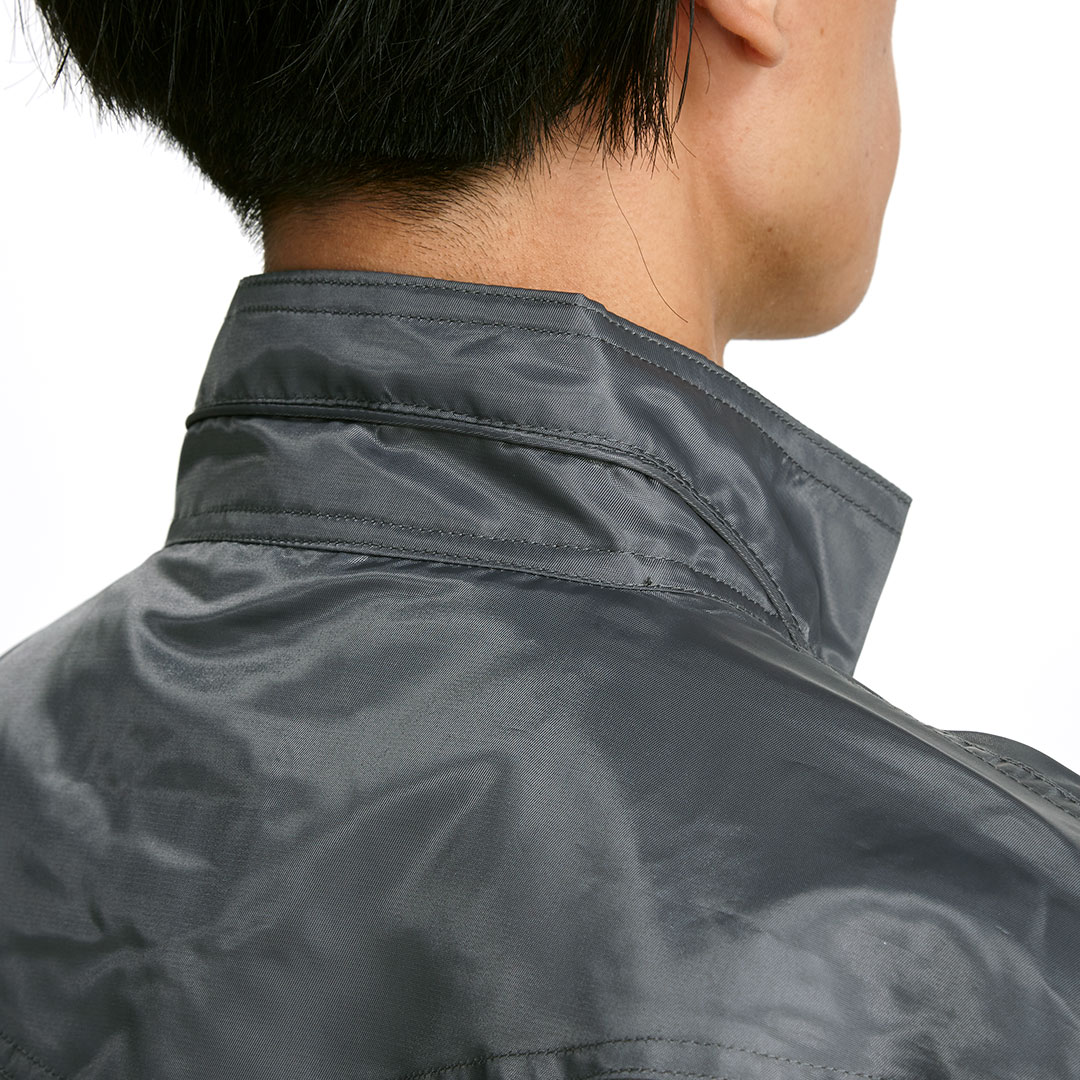 気軽に羽織れて男っぽいルックス。表面には撥水加工を施工。