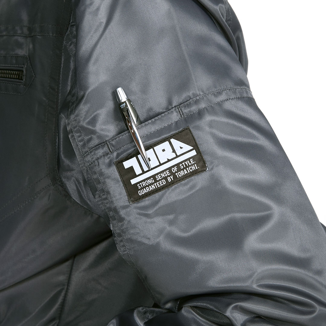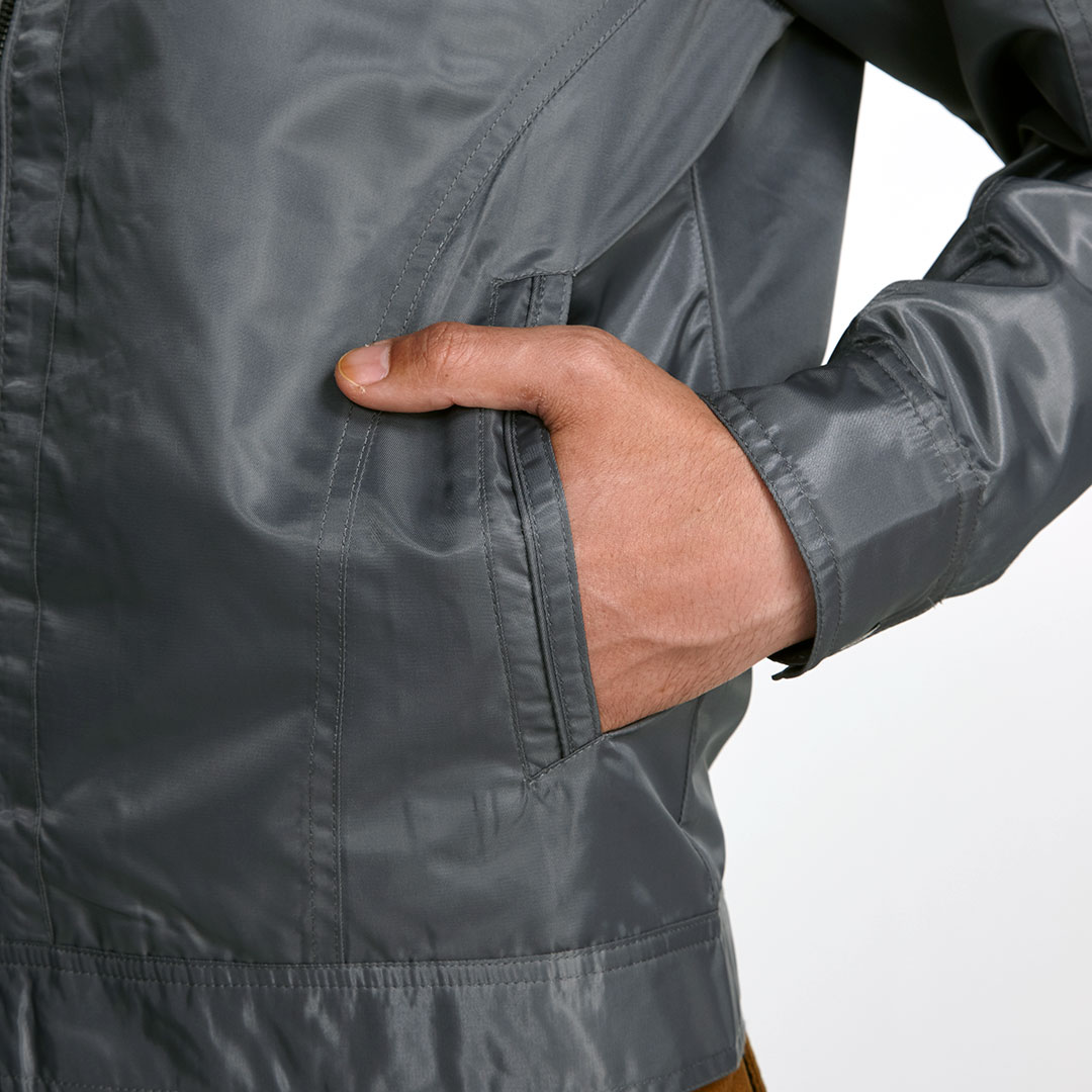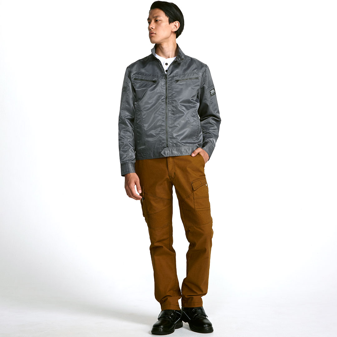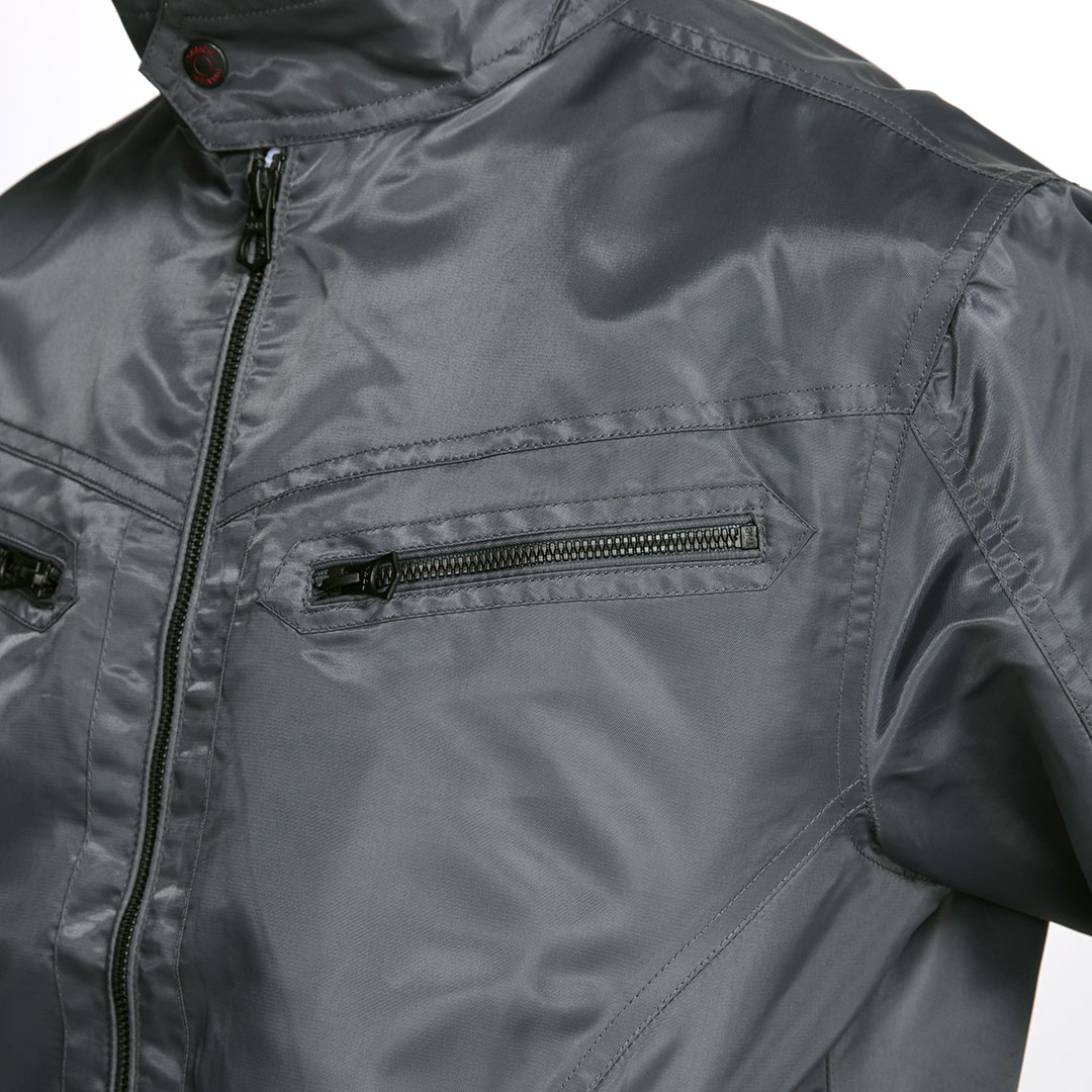 気軽に羽織れて男っぽいルックス。表面には撥水加工を施工。