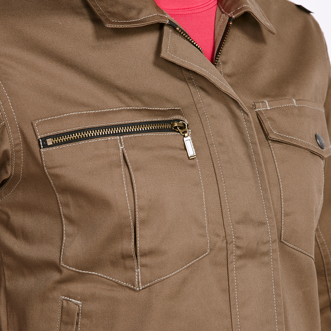 小ぶりの胸ポケットもスタイリッシュ。