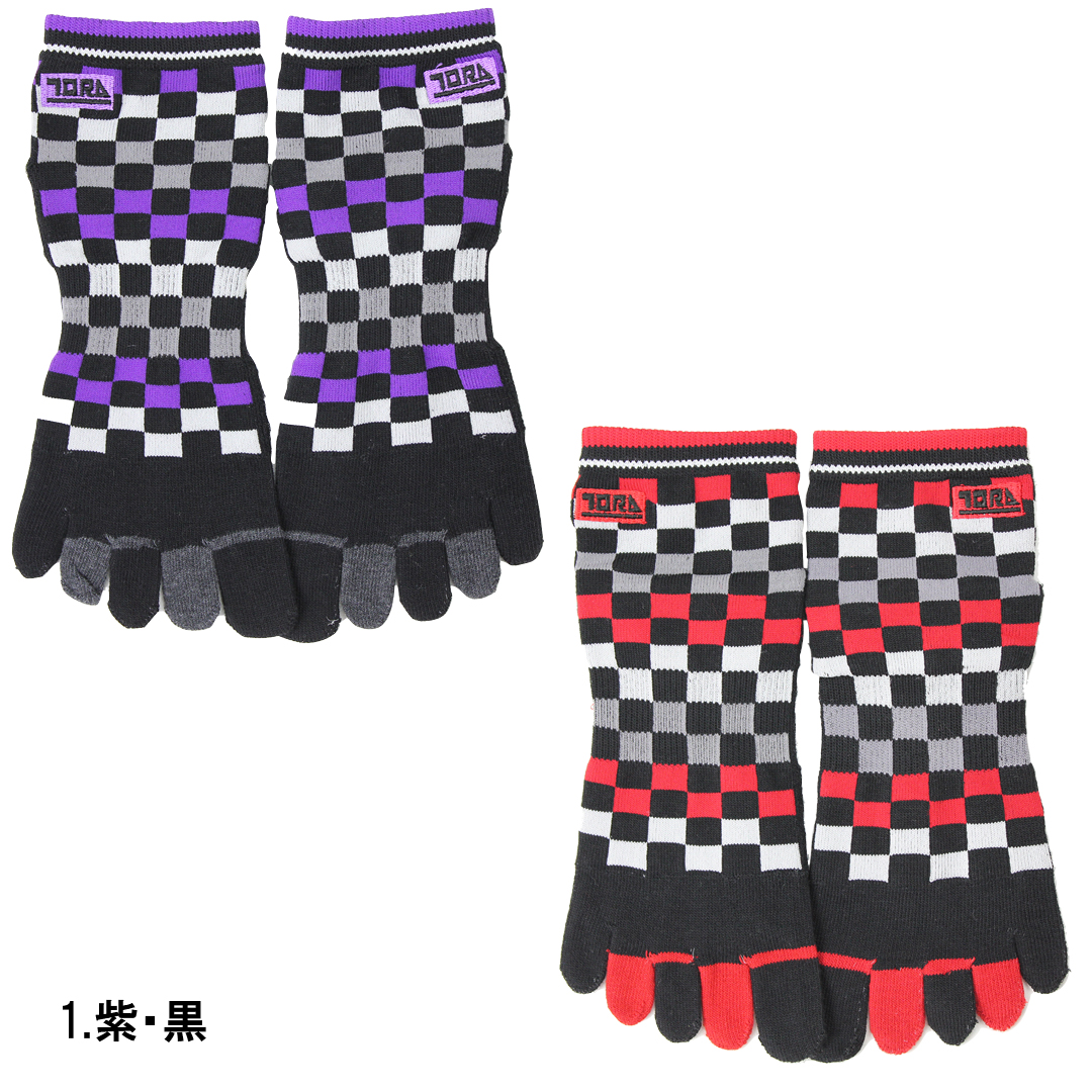 0108-909 2足組5本指ソックスショート丈 (市松)