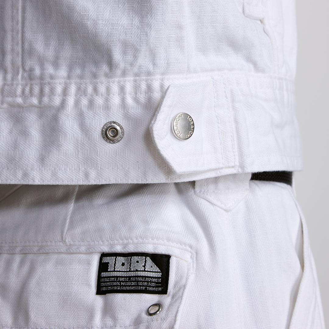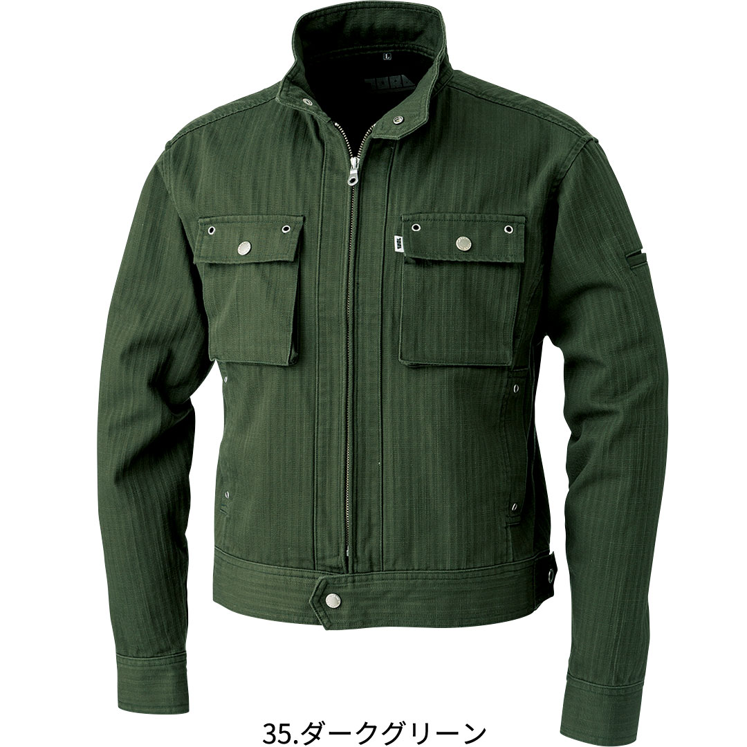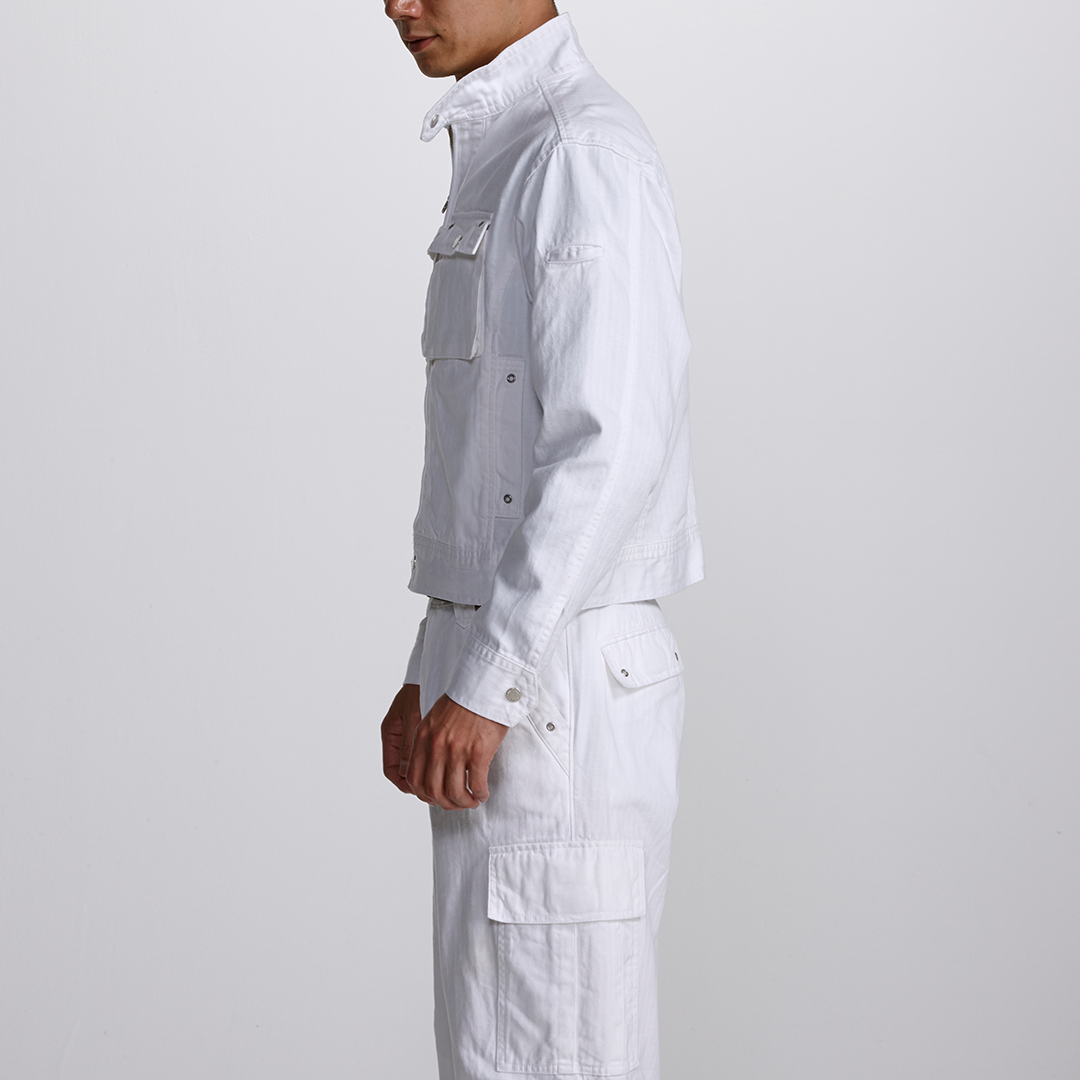ジャケットの衿は、防風性アップとオリジナル性を主張するスイングトップタイプ。胸ポケットはマチ付き。ラウンドフロント仕様を取り入れ、ファスナーの開閉もスムーズです。裾丈もややショートにし、スタイリッシュ。