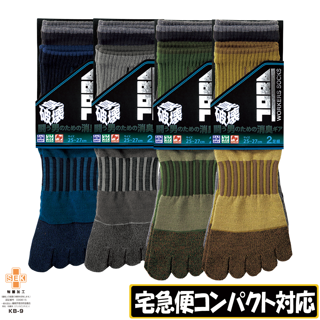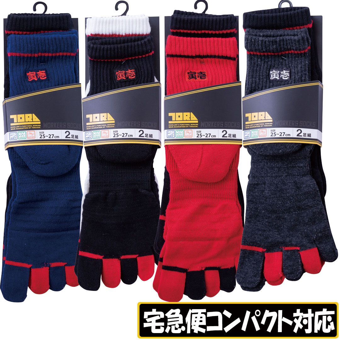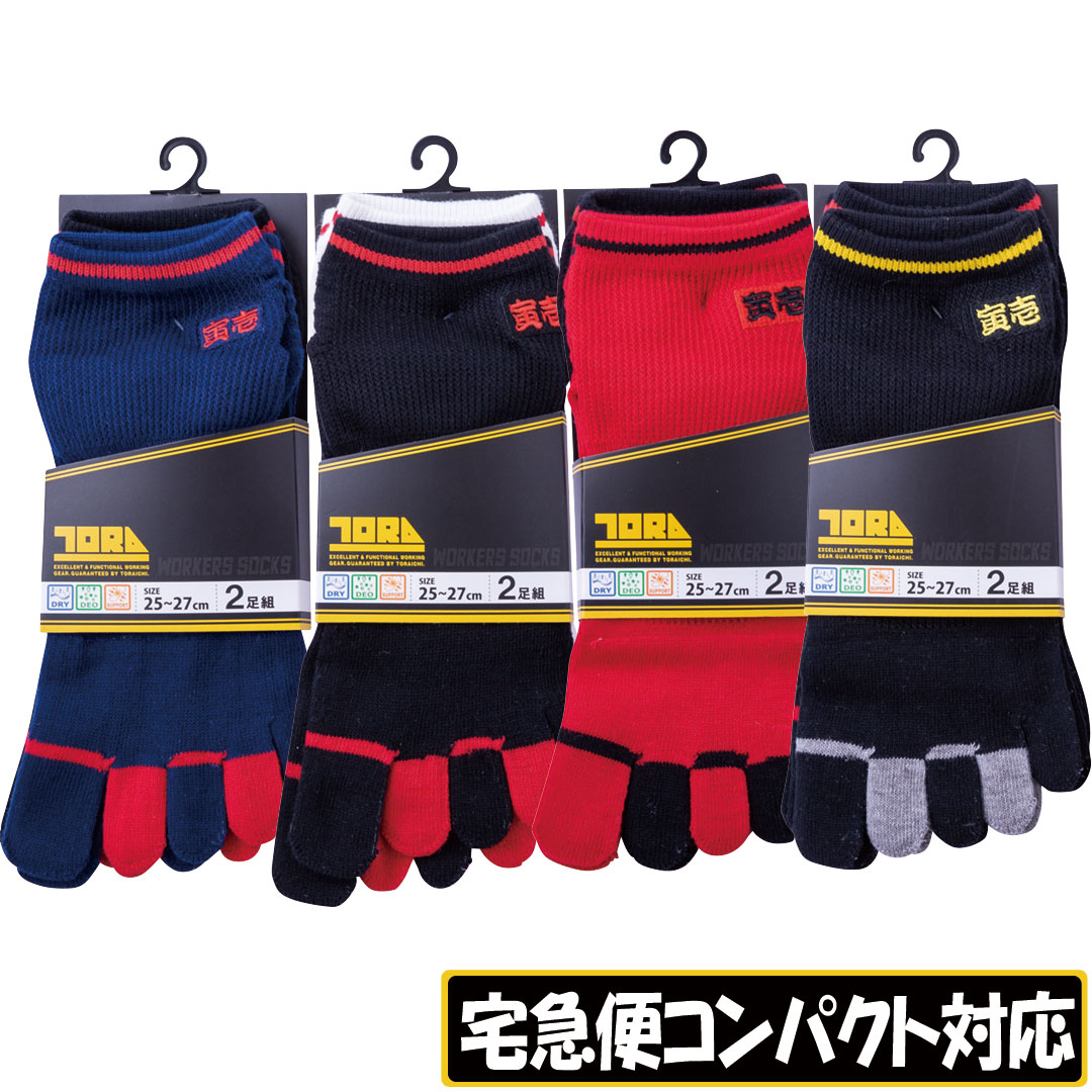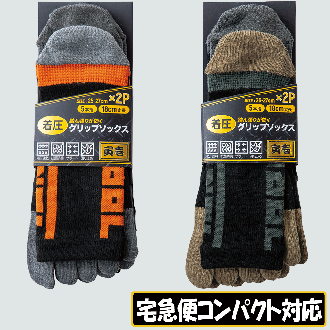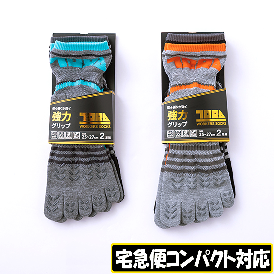 0121-909 丈長グリップソックス2足組5本指(ロゴ)