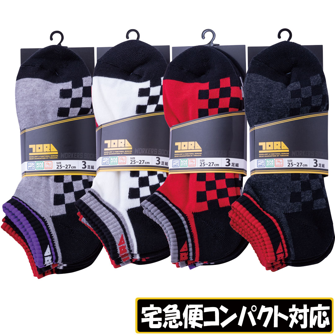 0105-909 3足組先丸ソックス (市松)